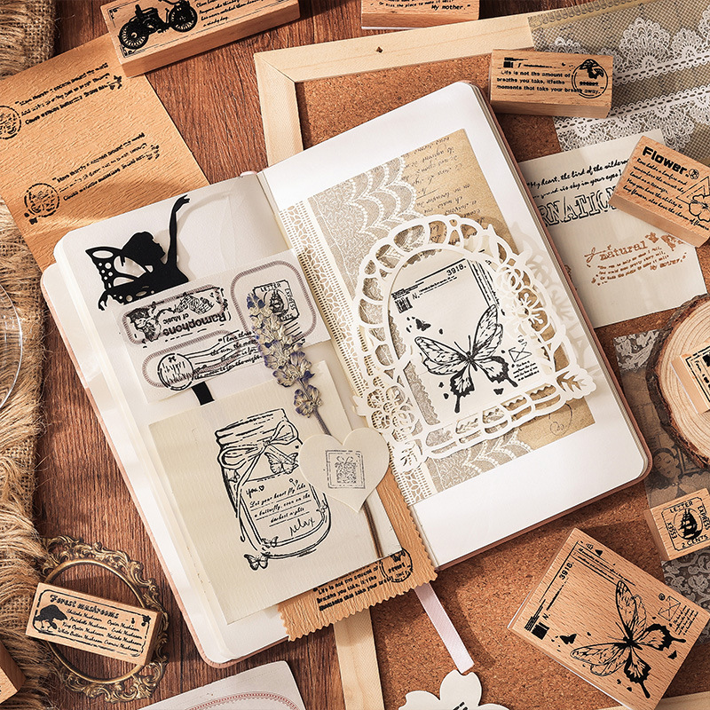 Dream Hunting Light Year Beech Rubber Wooden Notebook Seal Cross-Border Retro English Decorative Journal Seal