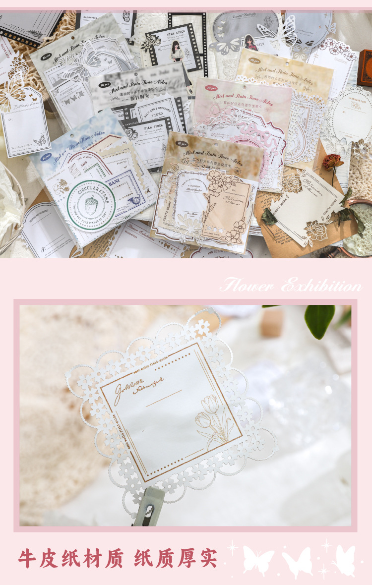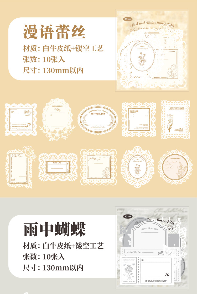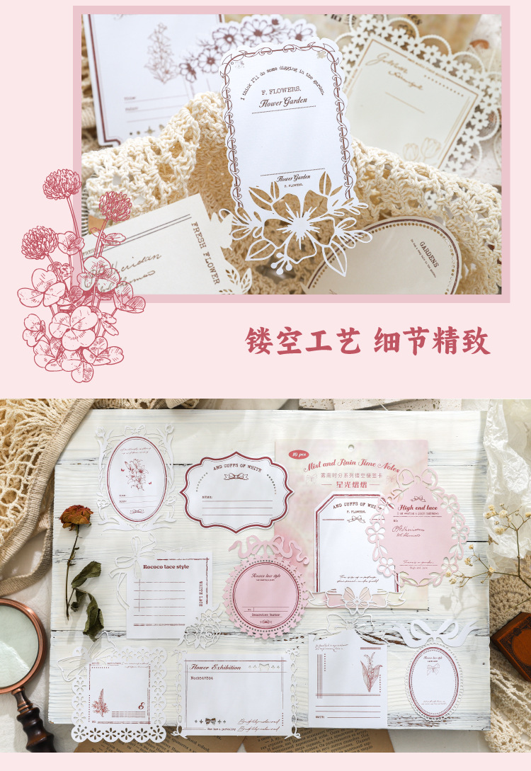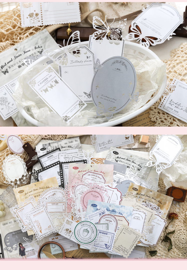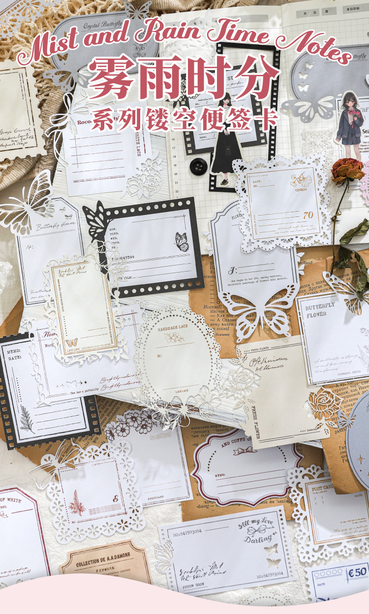 hollow-out note fog rain time series hand account retro material collage base european style vintage ornament 6 models