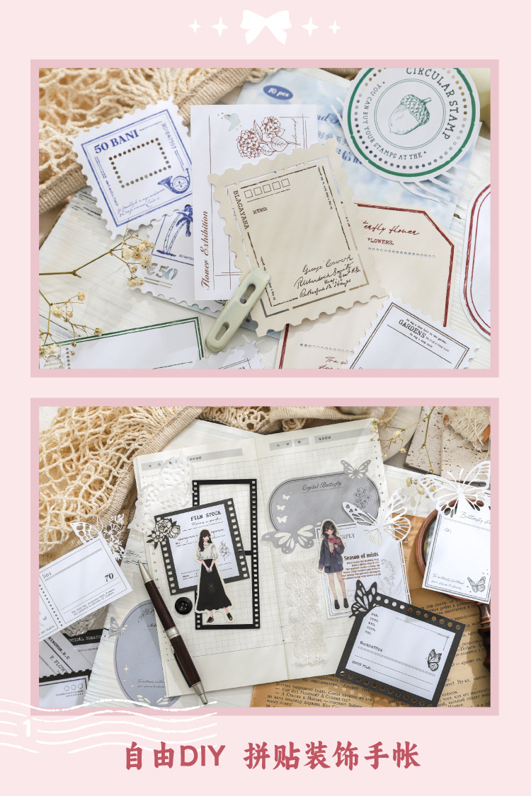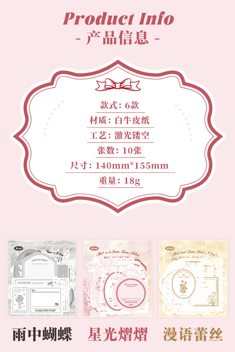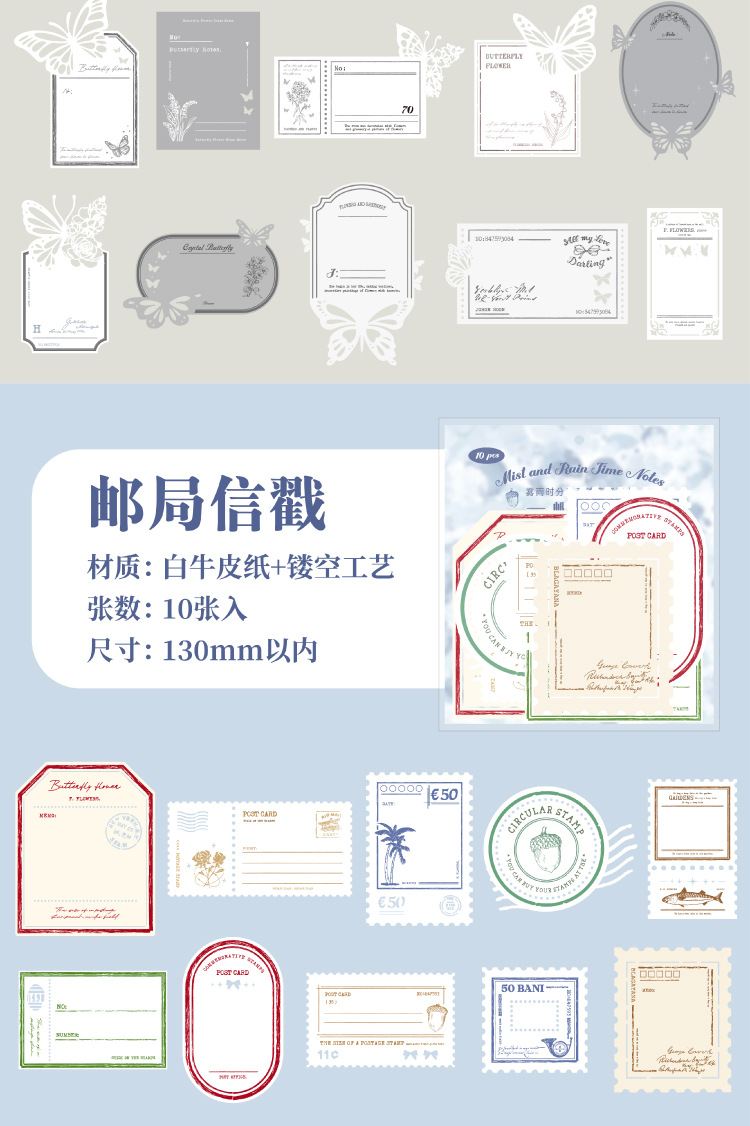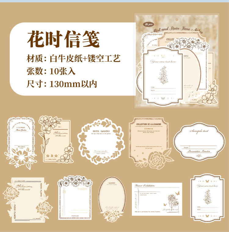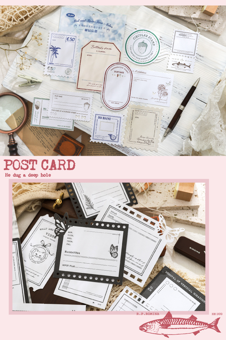 hollow-out note fog rain time series hand account retro material collage base european style vintage ornament 6 models