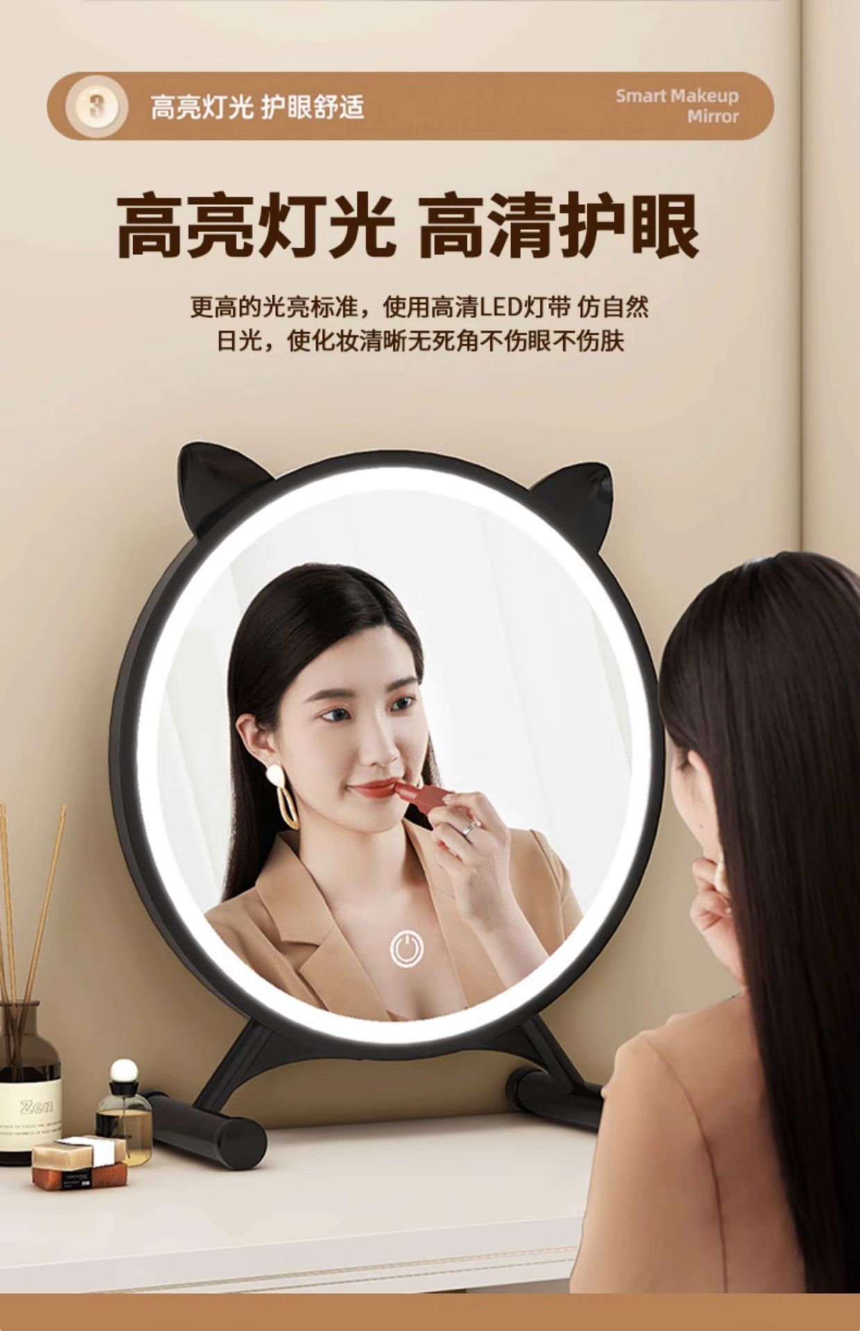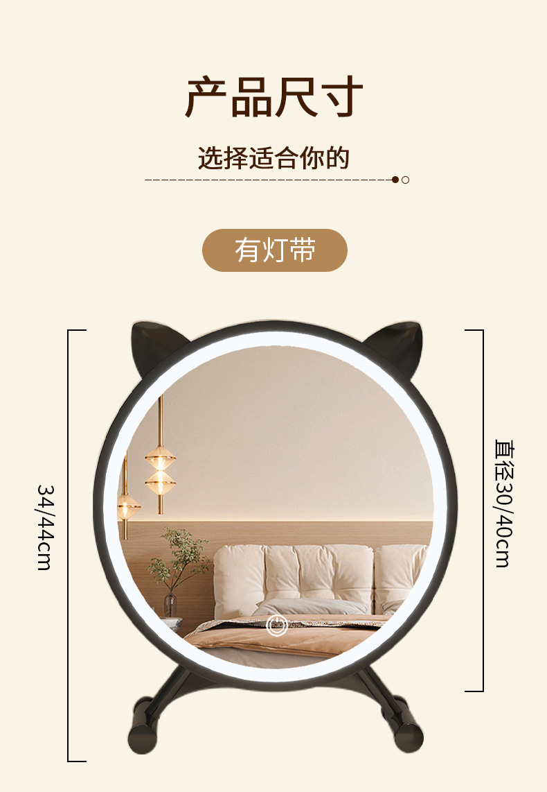 [cat ear] classic black 40cm (three-color light + adjustable brightness⭐adjustable angle)