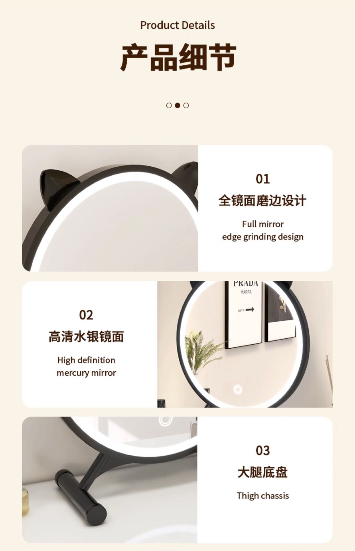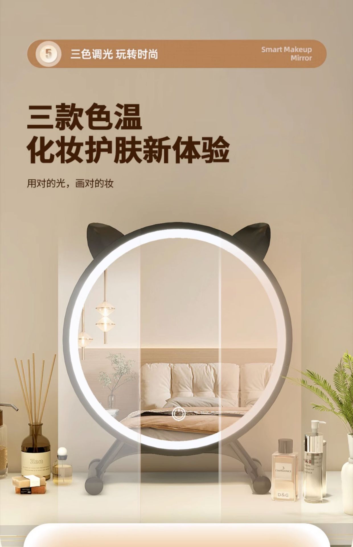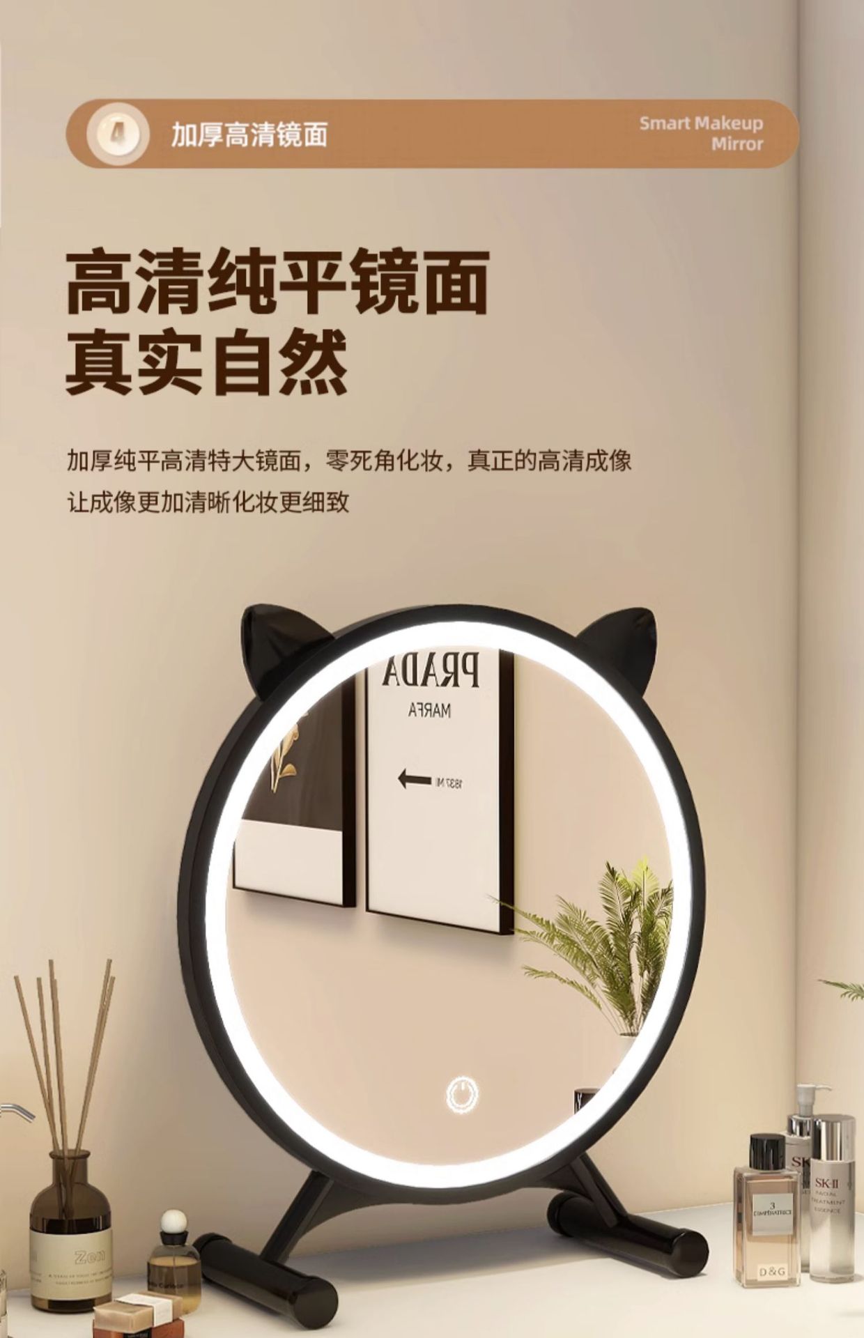 [cat ear] milky white 40cm (three-color light + adjustable brightness⭐adjustable angle)