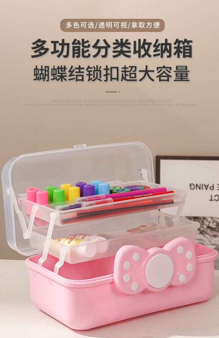 bowknot three-layer portable storage box foldable large toolbox nail beauty box art sundries plastic storage box