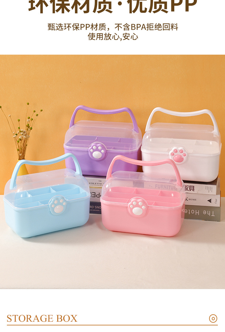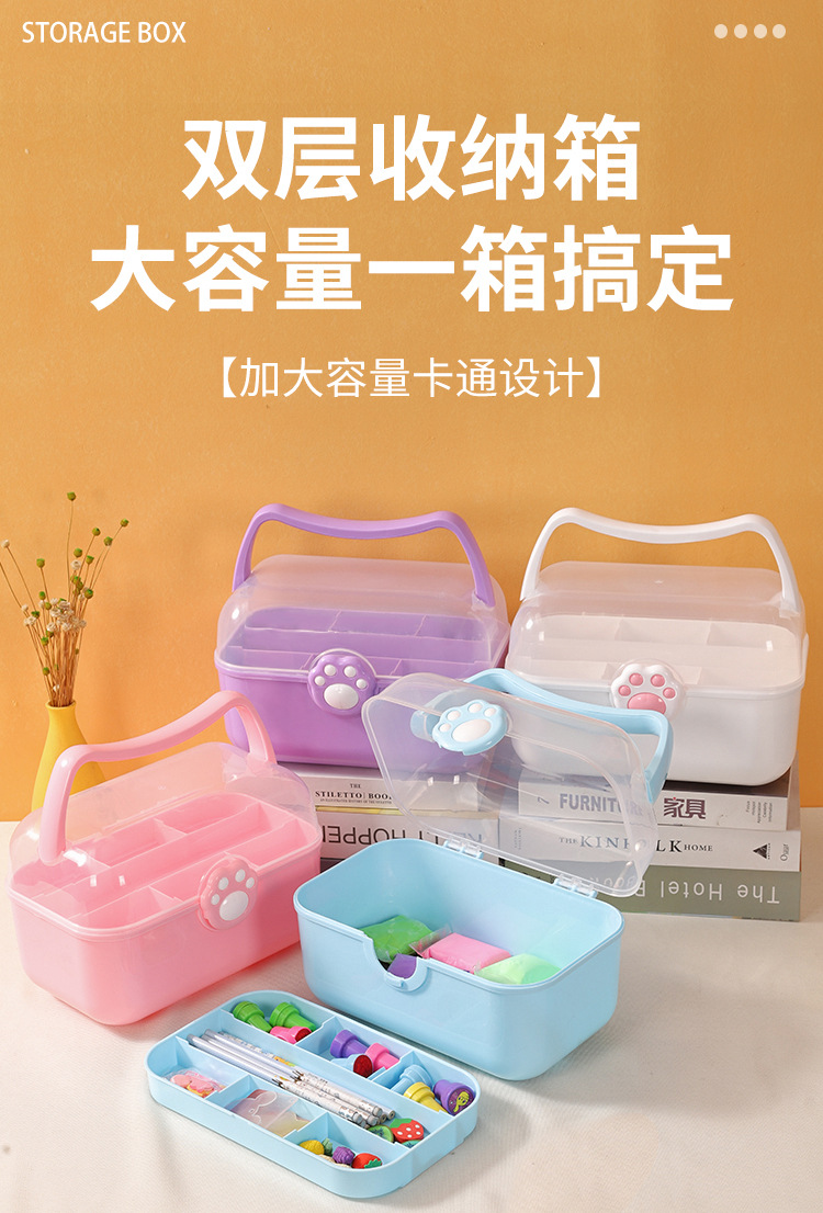 new children's jewelry storage box jewelry box household medicine box double layer cat's paw multifunctional toy storage box