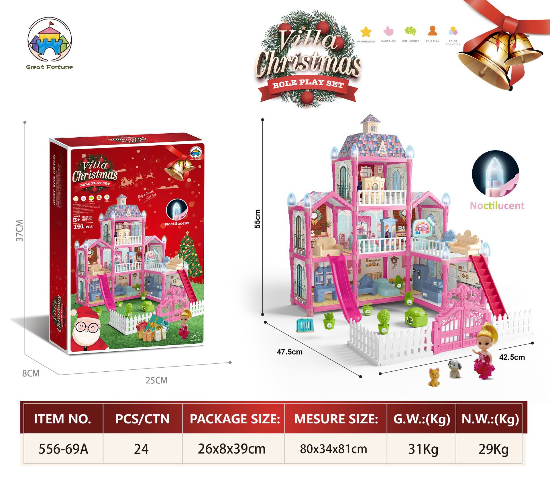 luminous diy assembled castle villa 191pcs (christmas version)