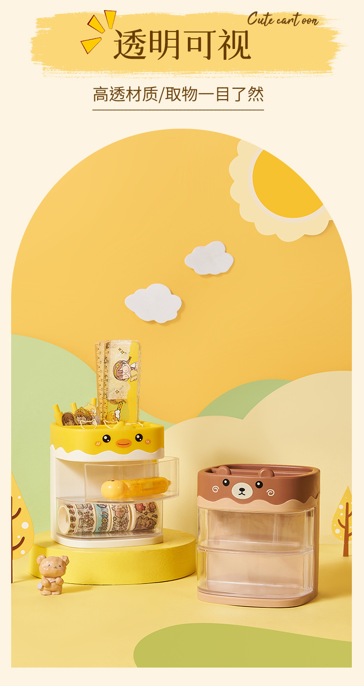 pen holder storage box desktop dormitory office multi-functional large capacity transparent stationery drawer-type dustproof storage rack