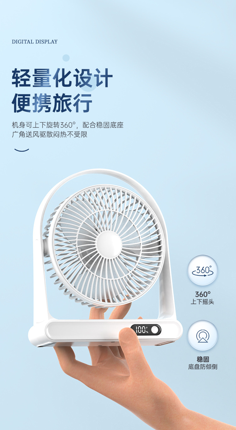 new portable electric fan desktop usb charging digital display desktop little fan dormitory office household fan