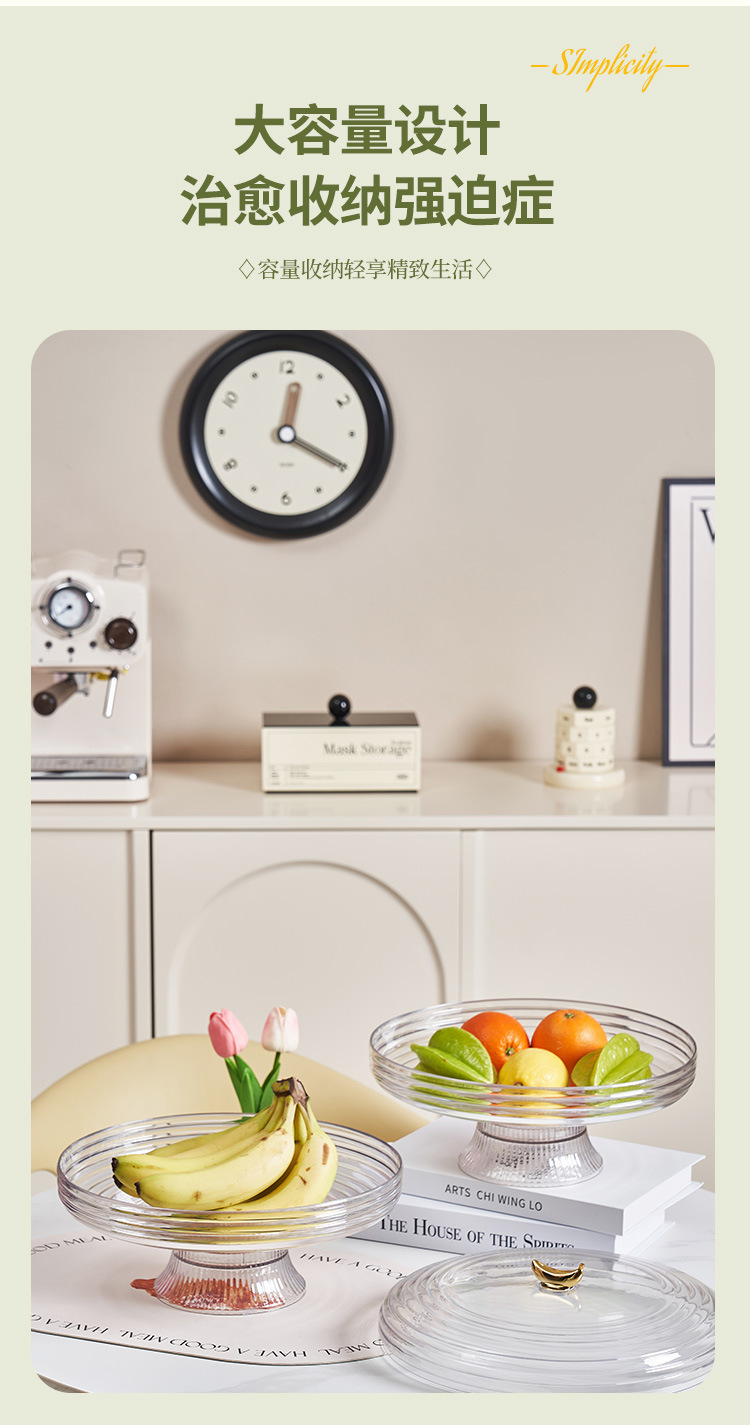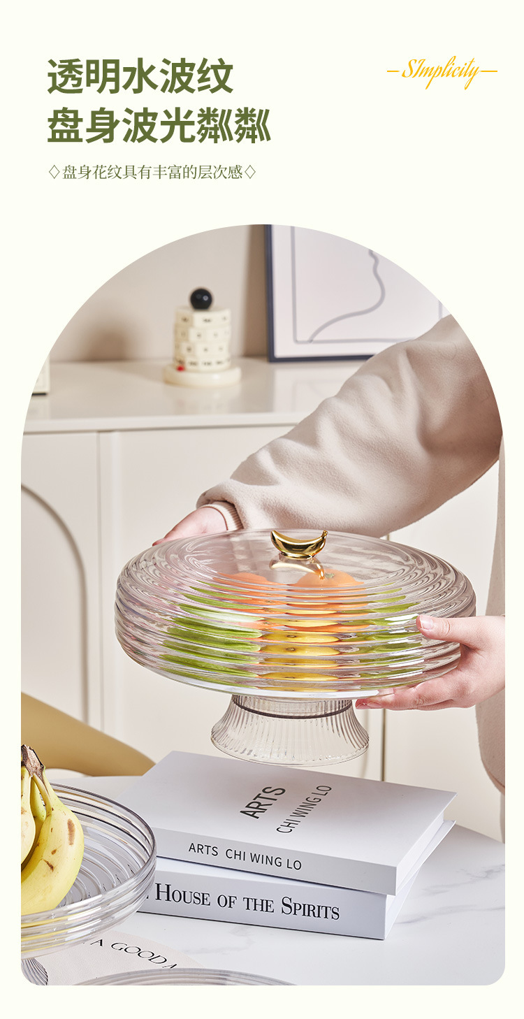 transparent golden edge flying saucer-shaped fruit plate with lid fruit plate household living room candy tray dried fruit tray snack storage plate