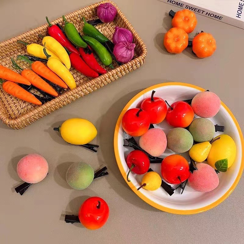 emulational fruit barrettes side clip cute funny bang clip strawberry peach hairpin small business stall barrettes