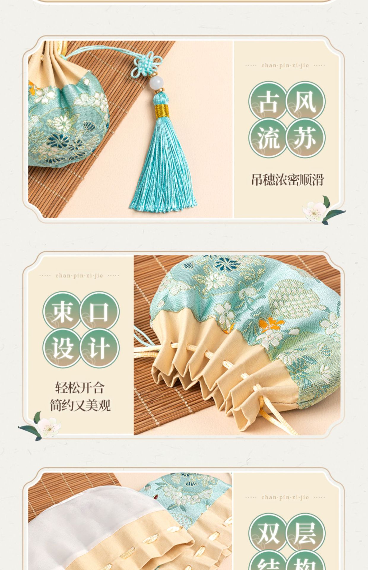i1 style · light green chinese knot tassel (empty bag)