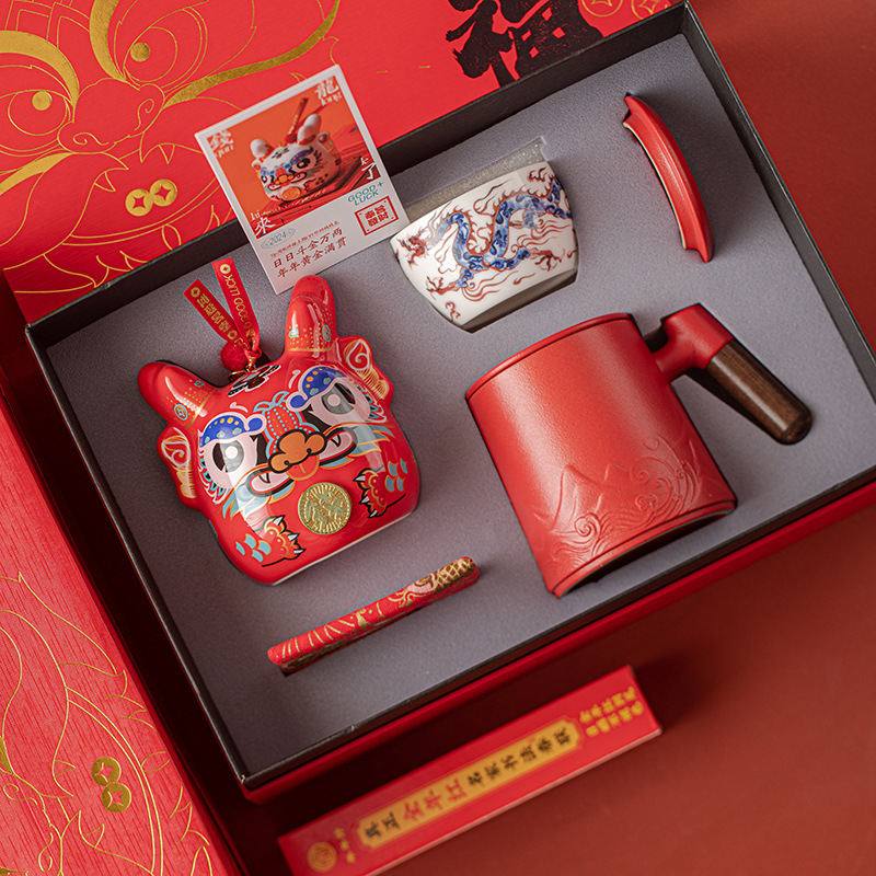 18 relief office cup red + qian long large red + dragon master cup + couplet