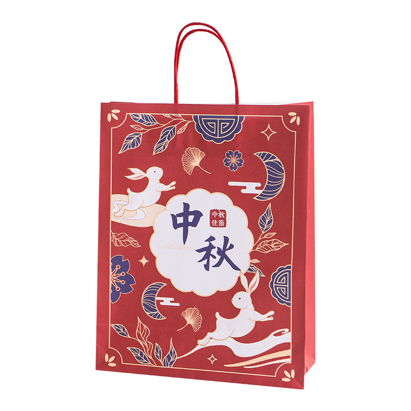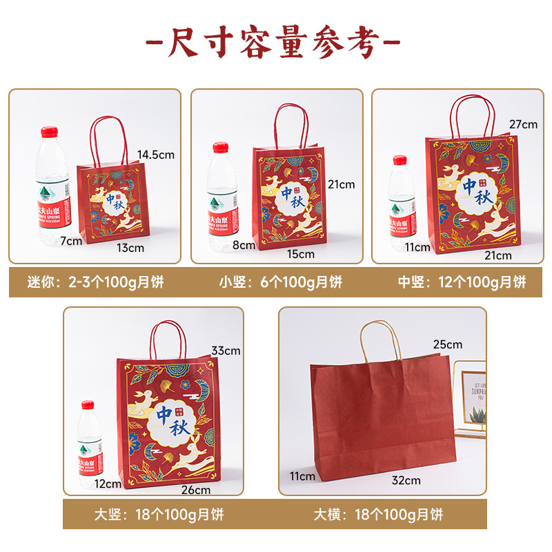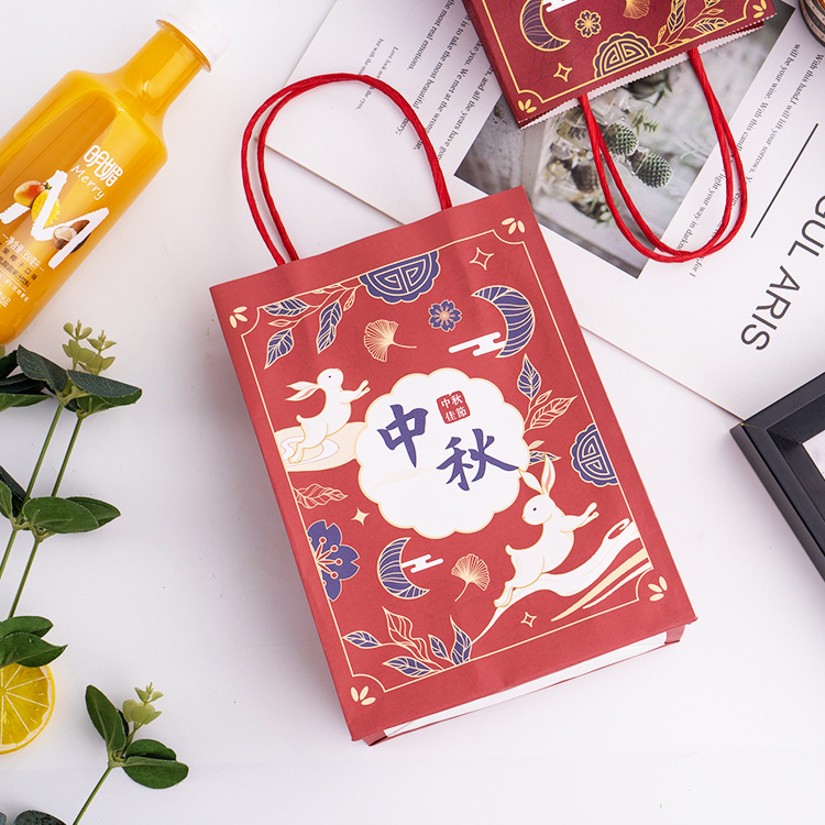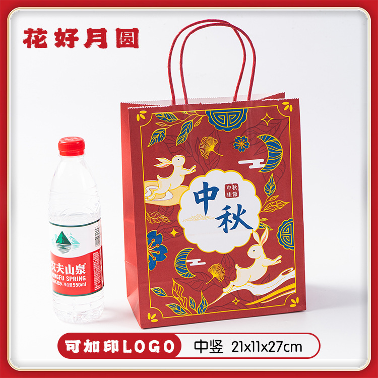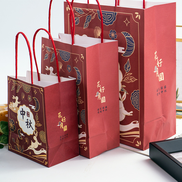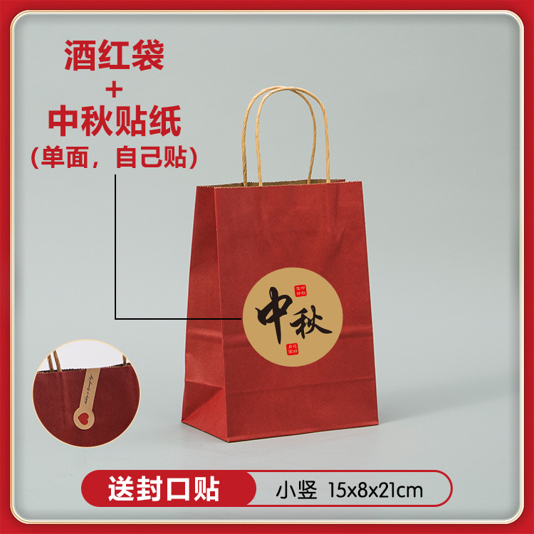 medium vertical wine red bag + mid-autumn festival sticker + sealing paste; kraft paper; 21x11x27