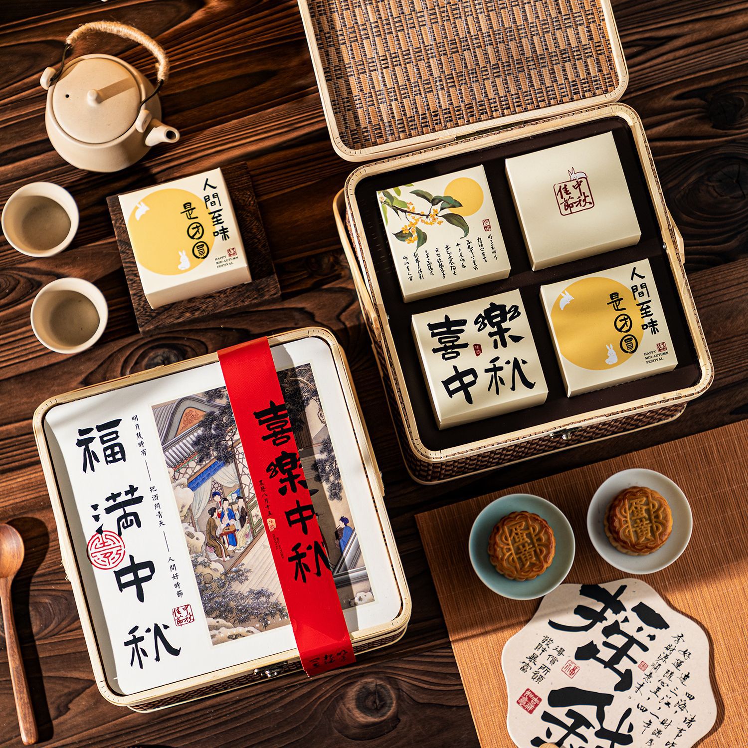 bamboo basket + happy mid-autumn festival cover paste + surrounding border stickers (no inner box); please see the picture