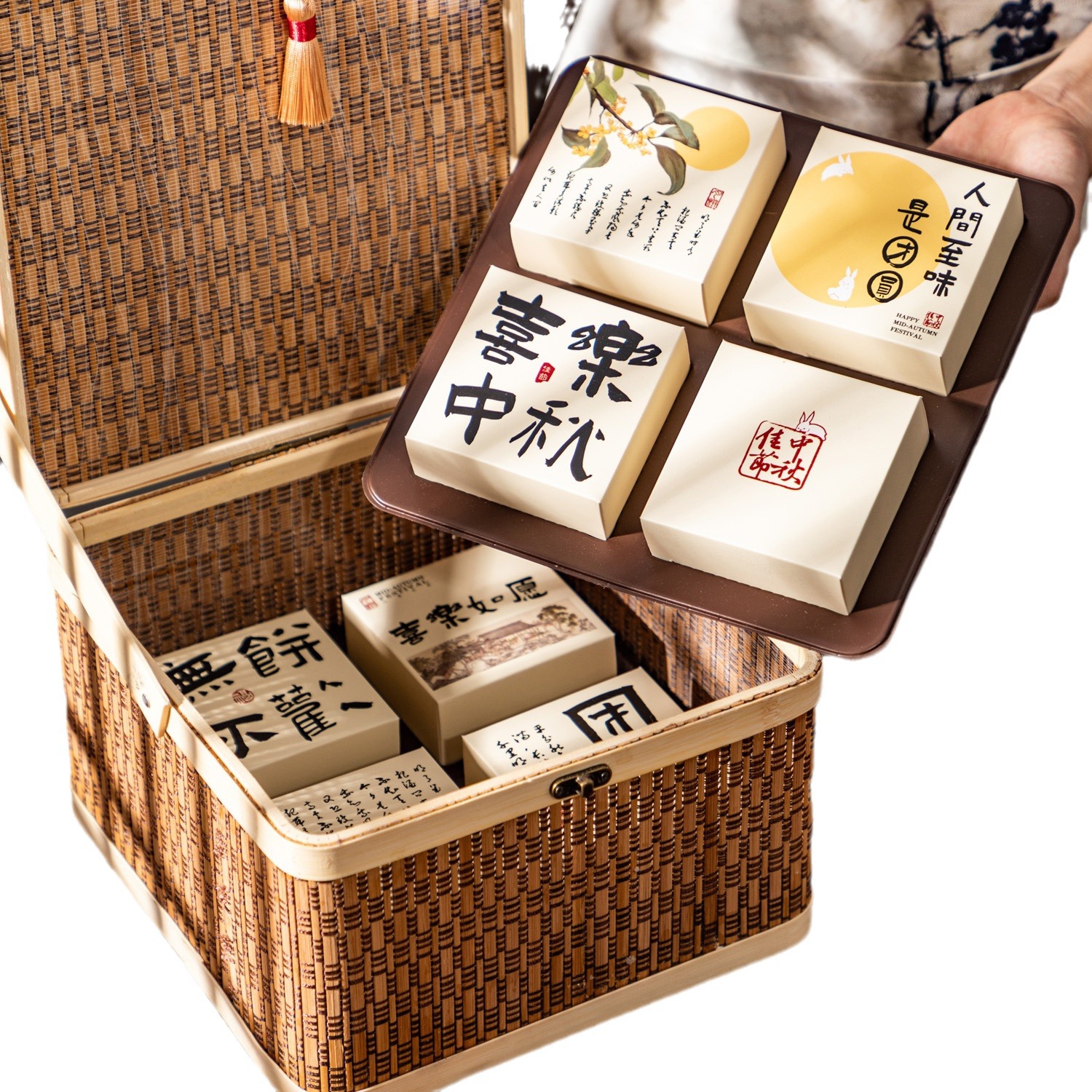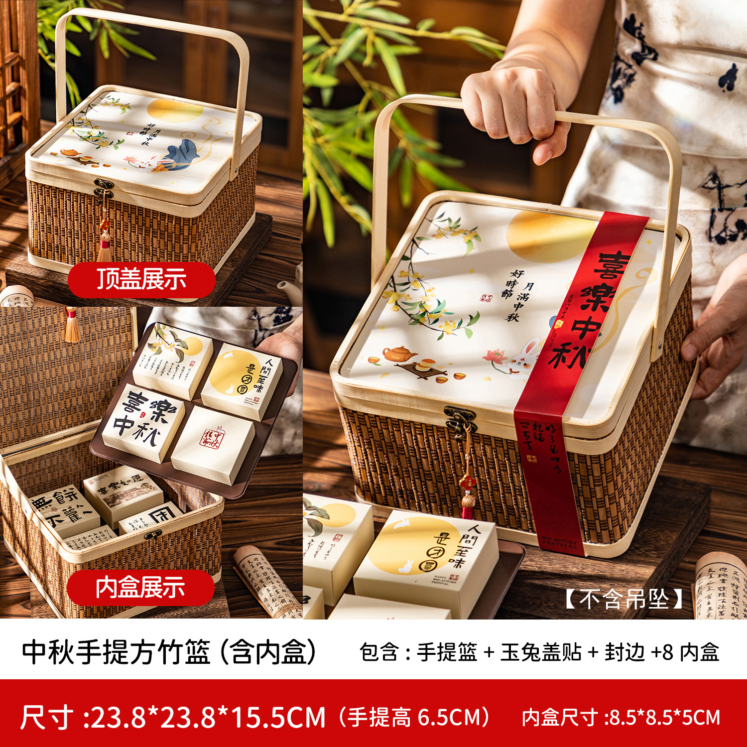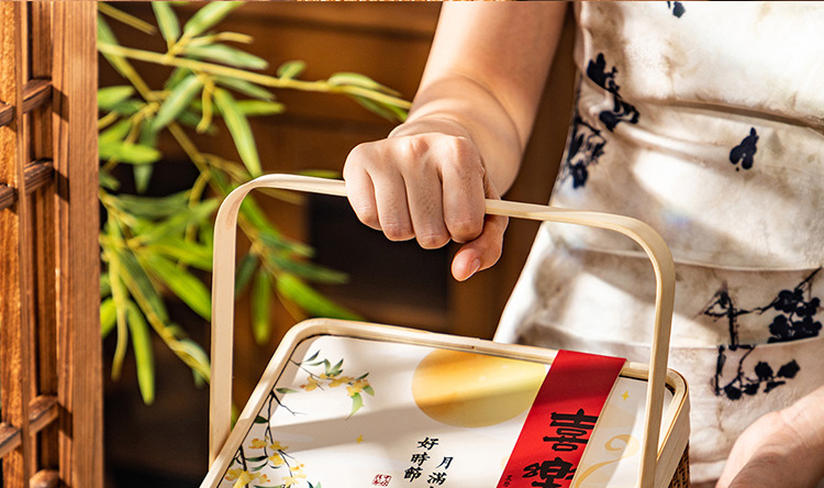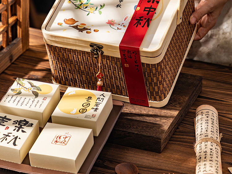 bamboo basket + happy mid-autumn festival cover paste + surrounding border stickers +8 inner box; please see the picture