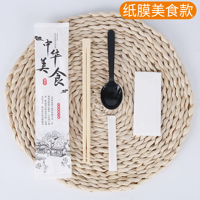 european spoon frosted film four-piece set (twin chopsticks)(100 sets)