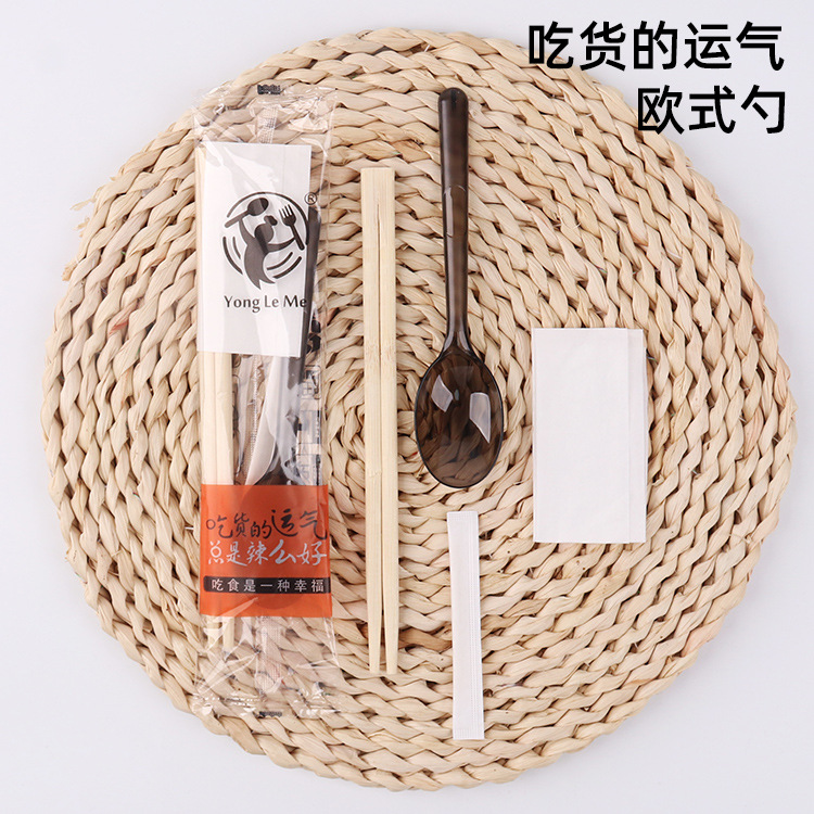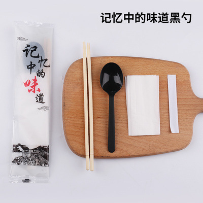 4.5 roundheaded chopsticks chinese four-piece black round spoon (100 sets) on the tip of the tongue