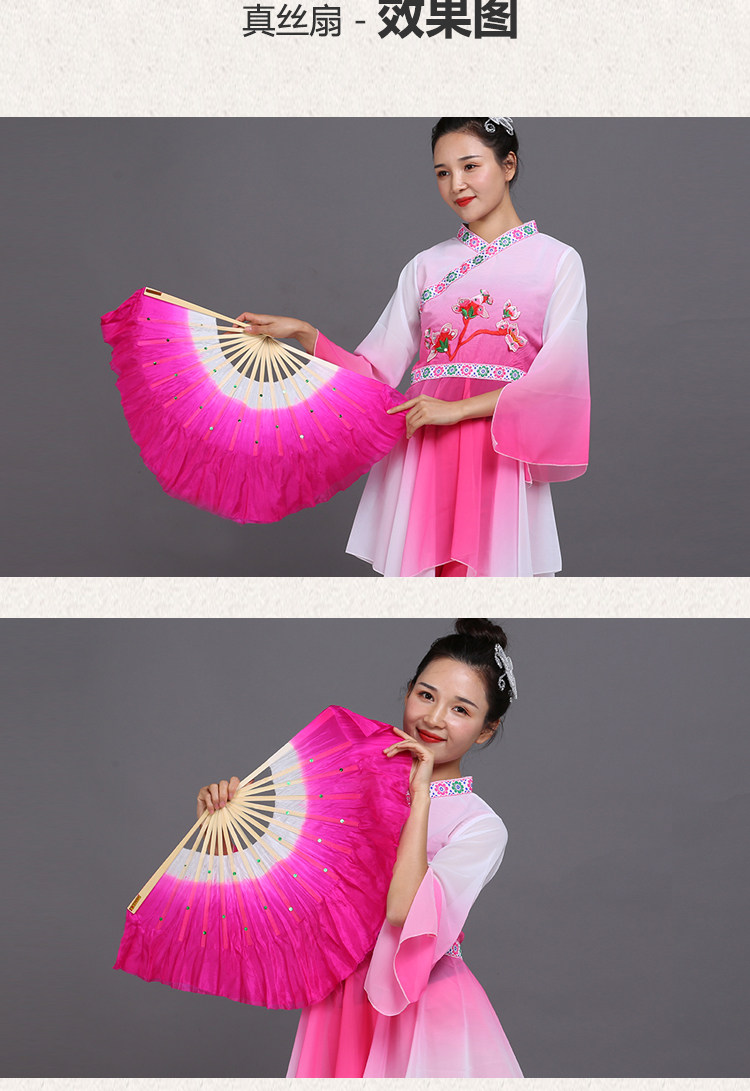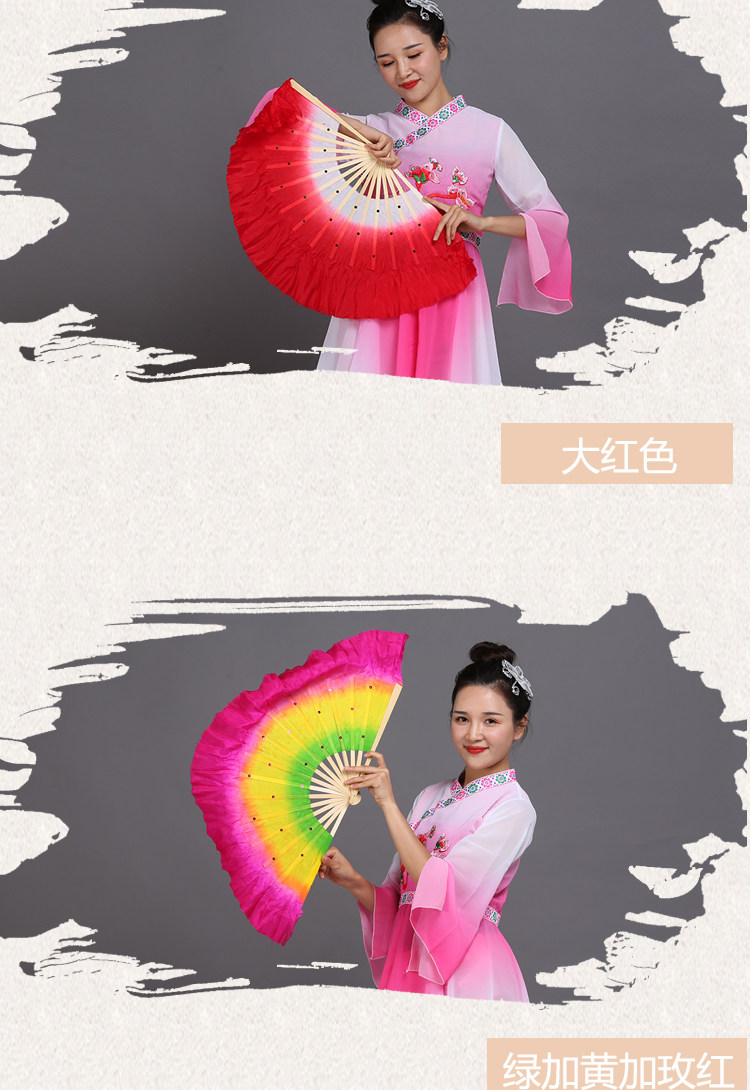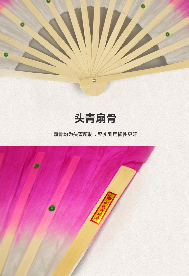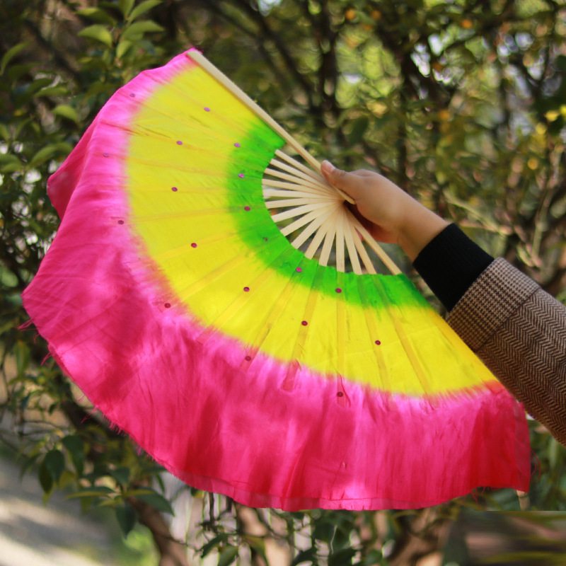 silk fan 33.33cm (green + yellow + pink) double-sided right hand
