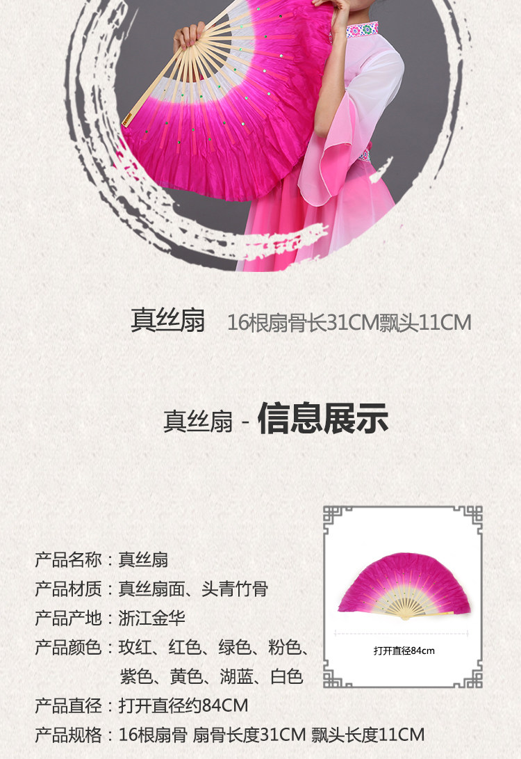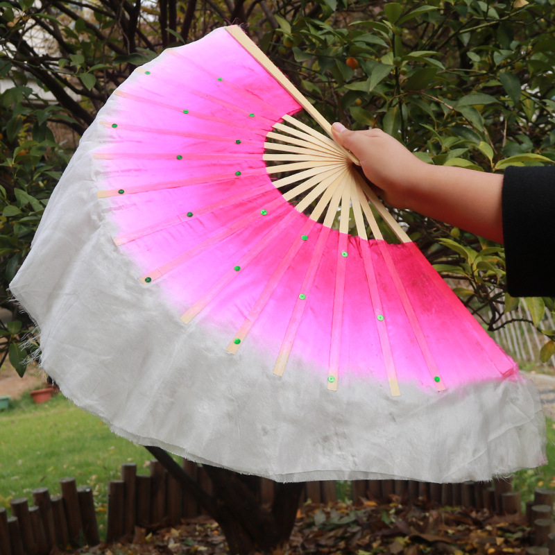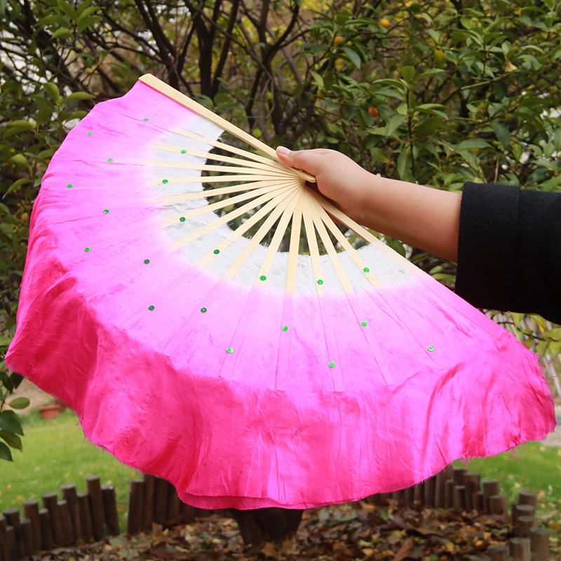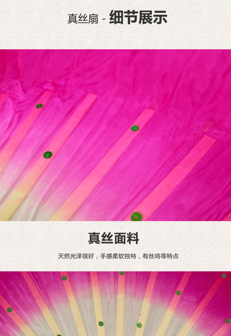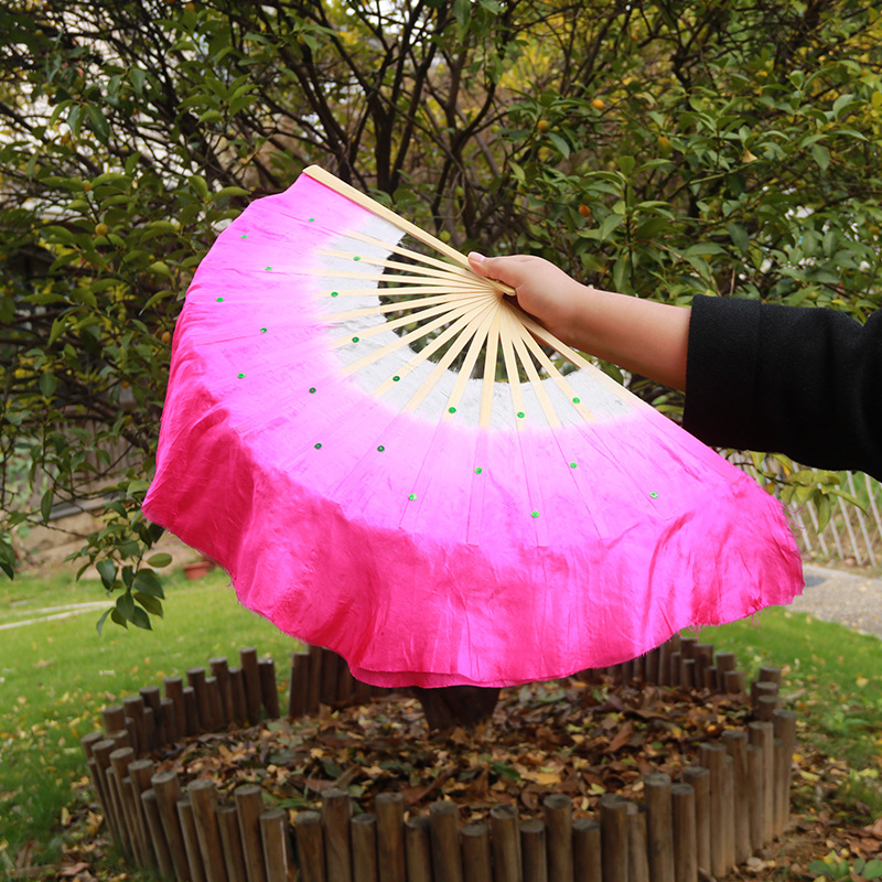 silk fan 33.33cm (green + yellow + pink) double-sided right hand