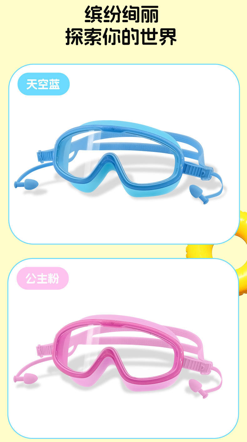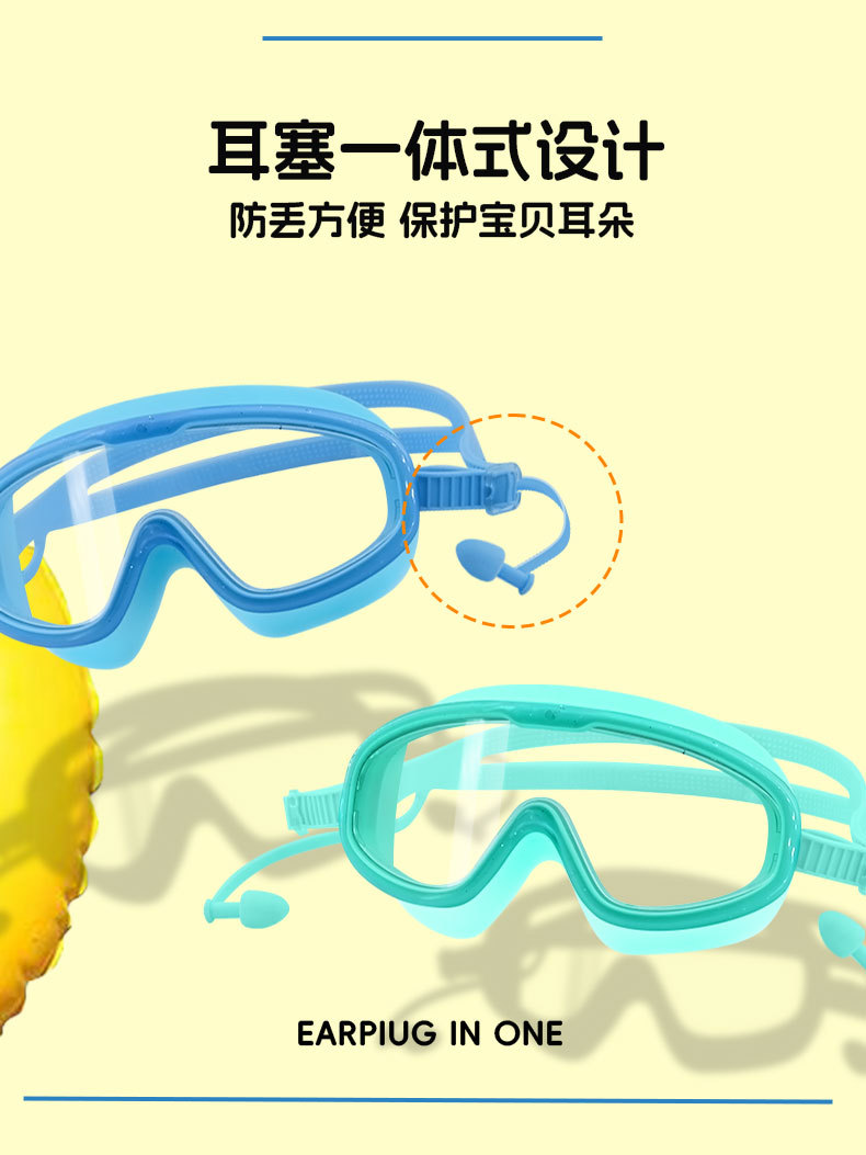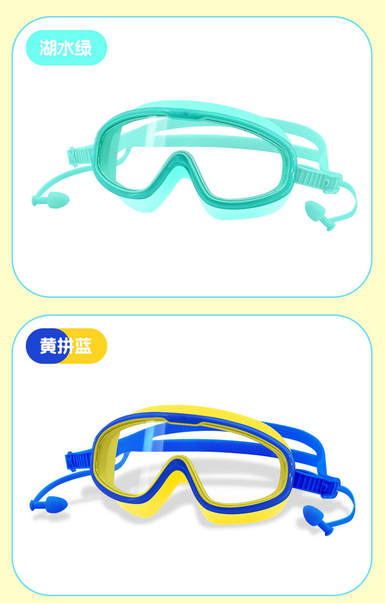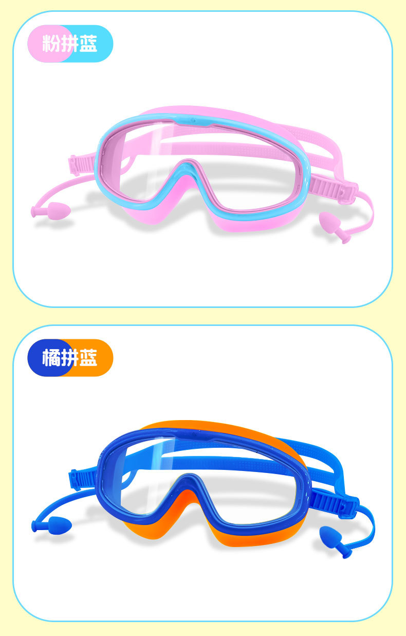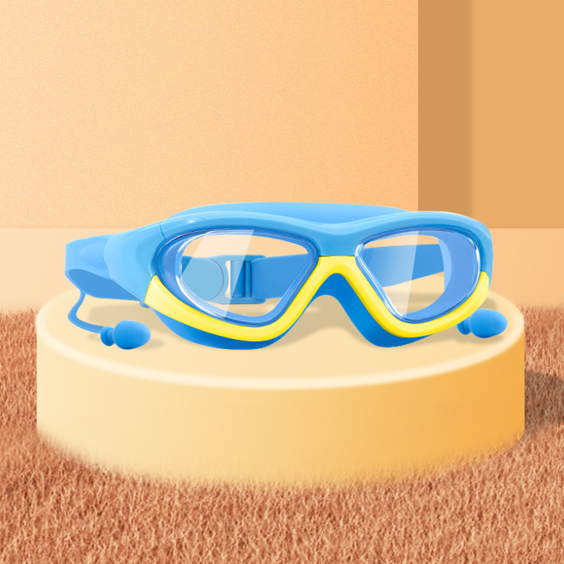 blue and yellow color matching children's large frame swimming goggles (boxed)