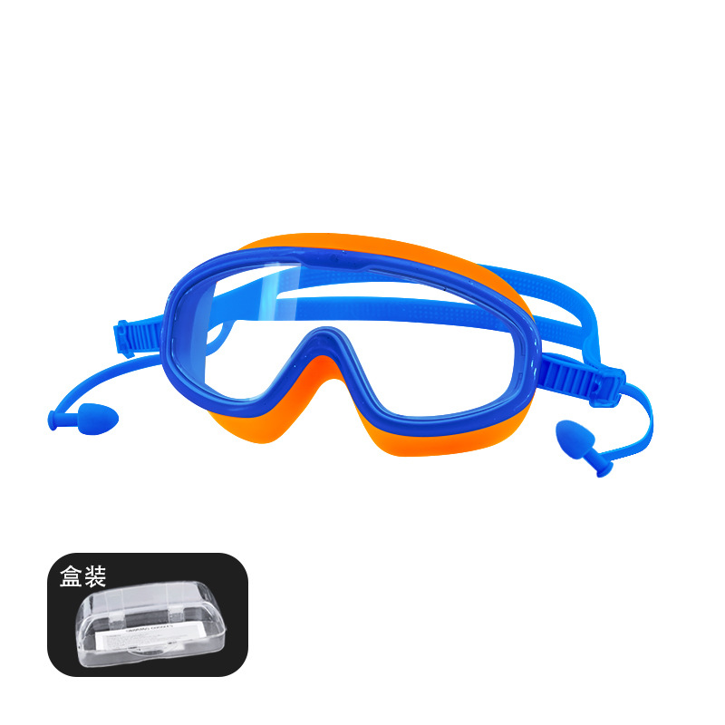 blue orange color matching children's large frame swimming goggles (boxed)