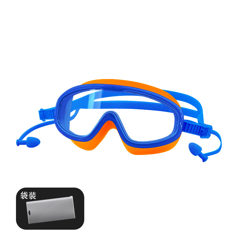 blue orange color matching children's large frame swimming goggles (bag)