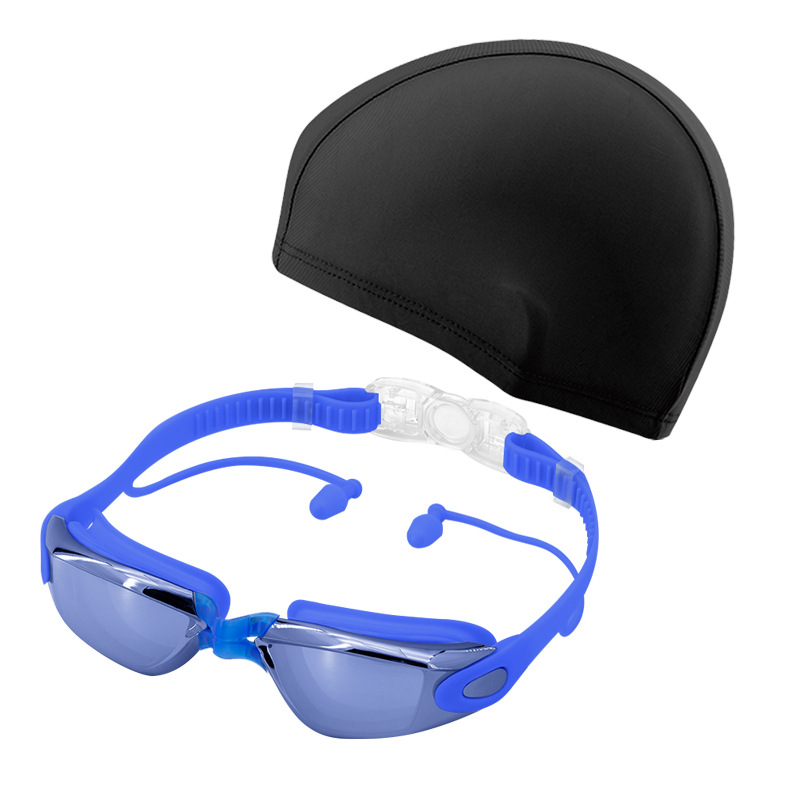 electroplated blue-swimming goggles + cloth swim cap (black cap)