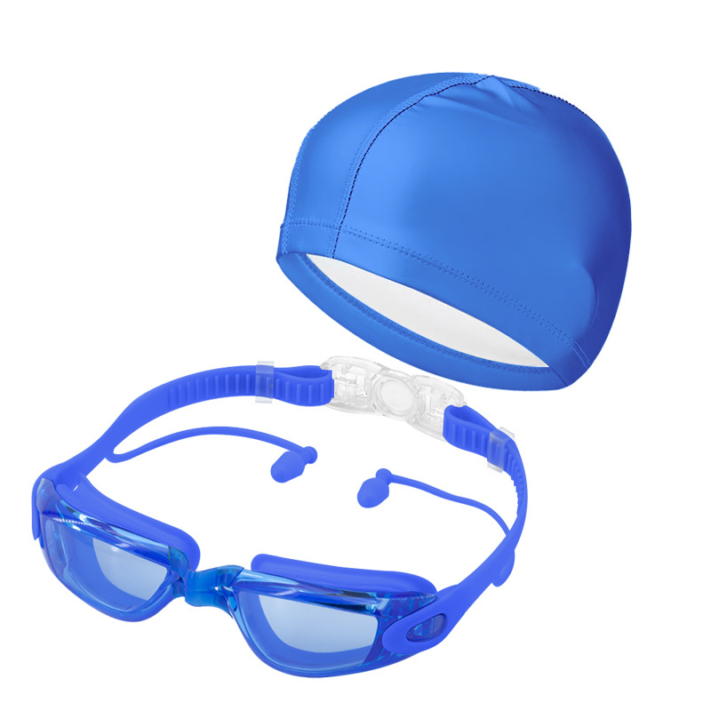electroplating blue-swimming goggles + pu waterproof swimming cap (swimming standard)