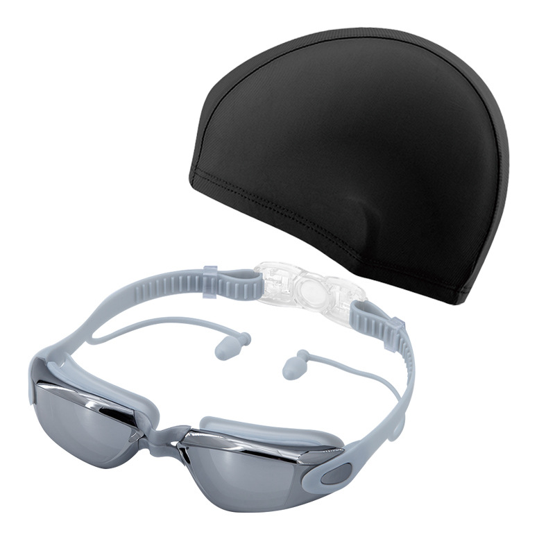 electroplating silver-swimming goggles + cloth swim cap (black cap)