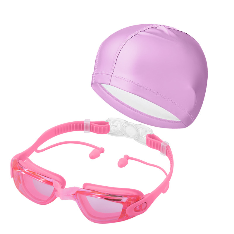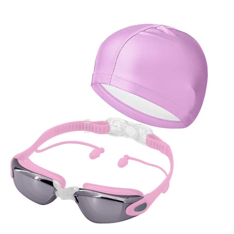 electroplated pink-swimming goggles + pu waterproof swimming cap (swimming standard)