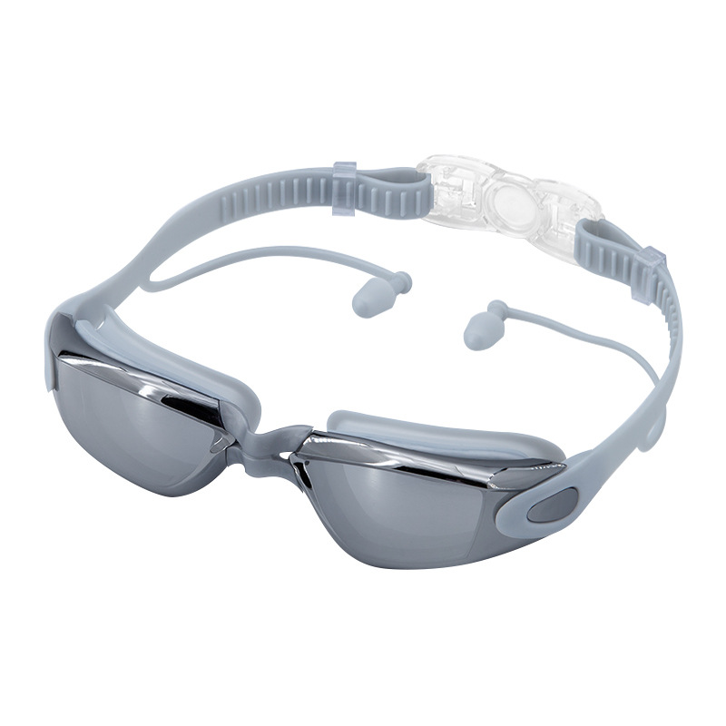 electroplating silver-swimming goggles pu cap nasal splint earplugs + waterproof bag random color
