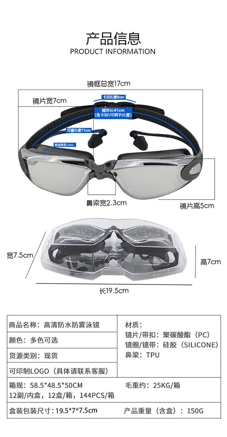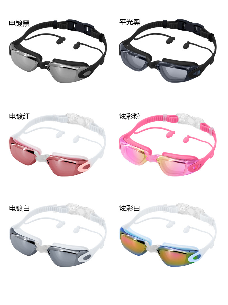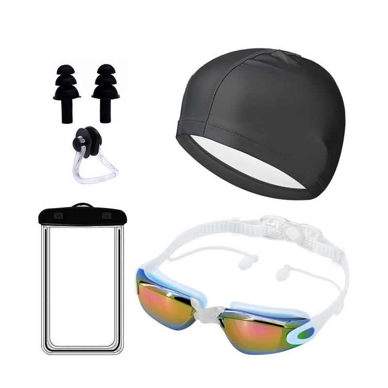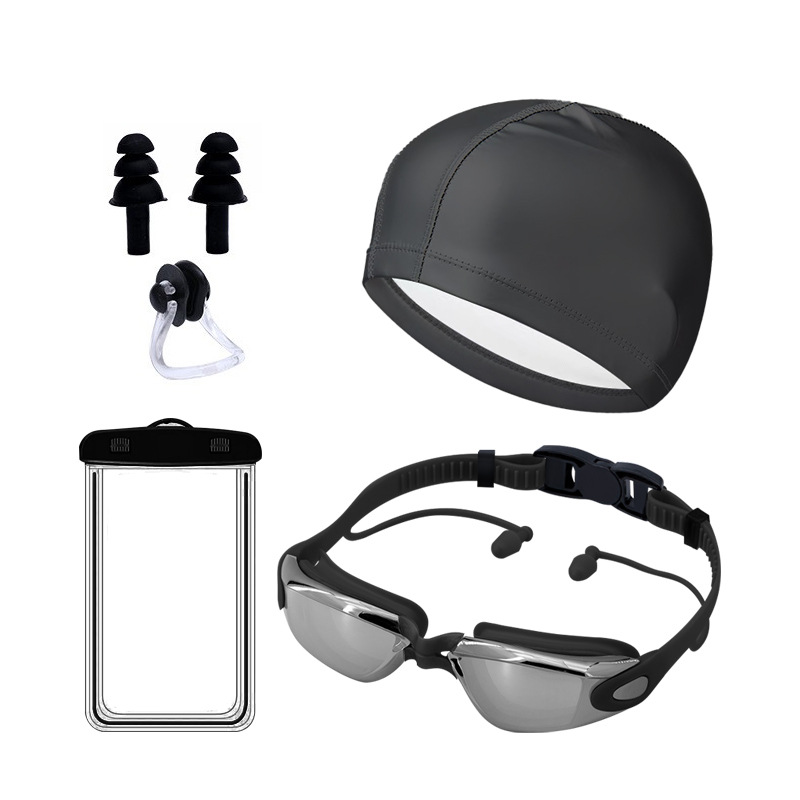 black plating + pu swimming cap + nasal splint earplugs + mobile phone waterproof bag