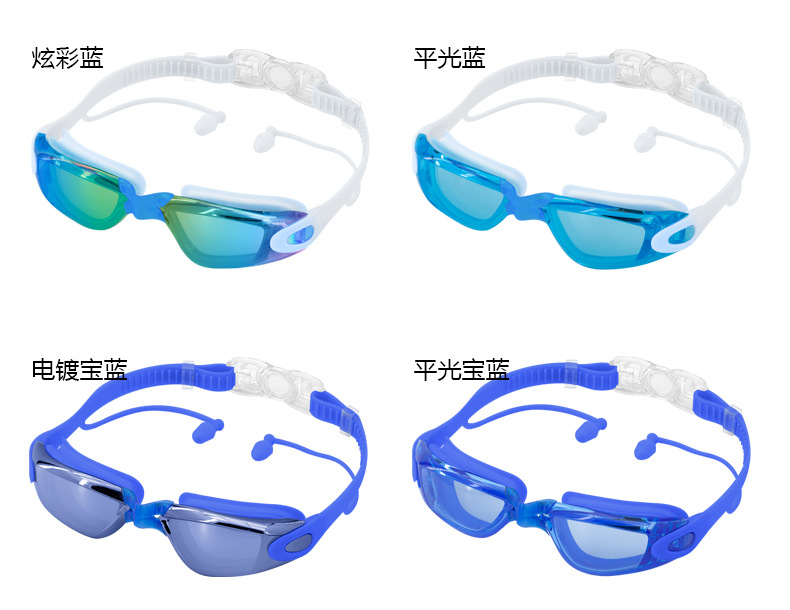 blue plating + pu swimming cap + nasal splint earplugs + mobile phone waterproof bag