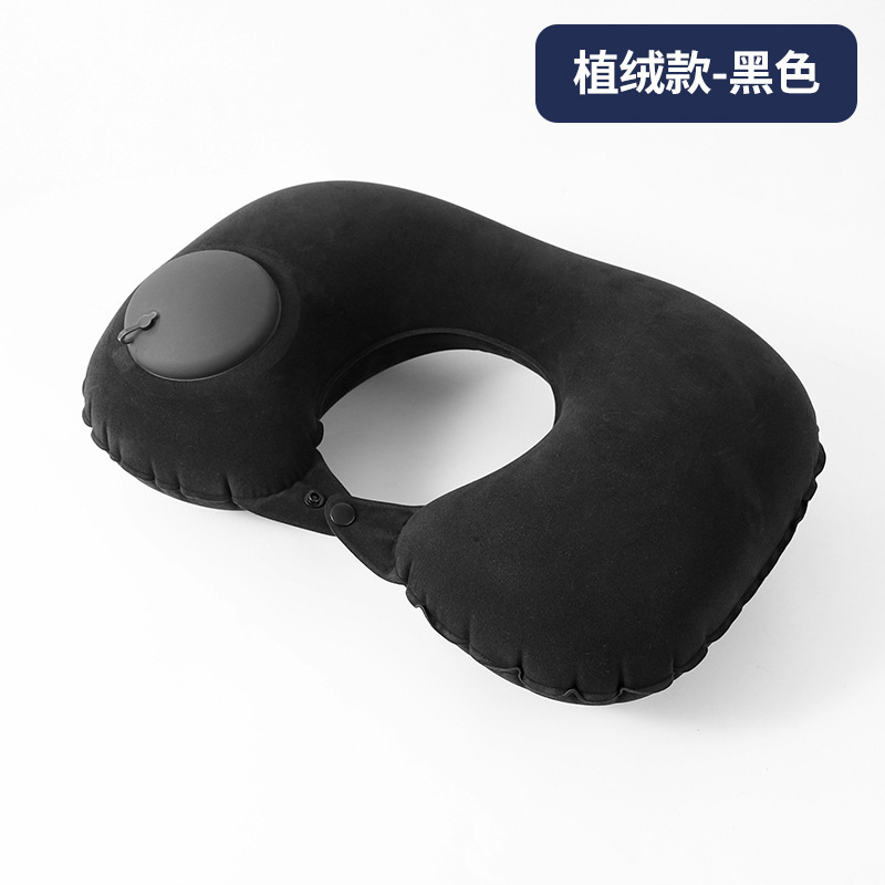 u-shaped [flocking] press inflatable pillow-black