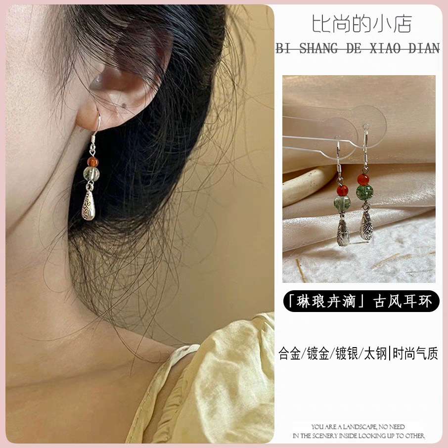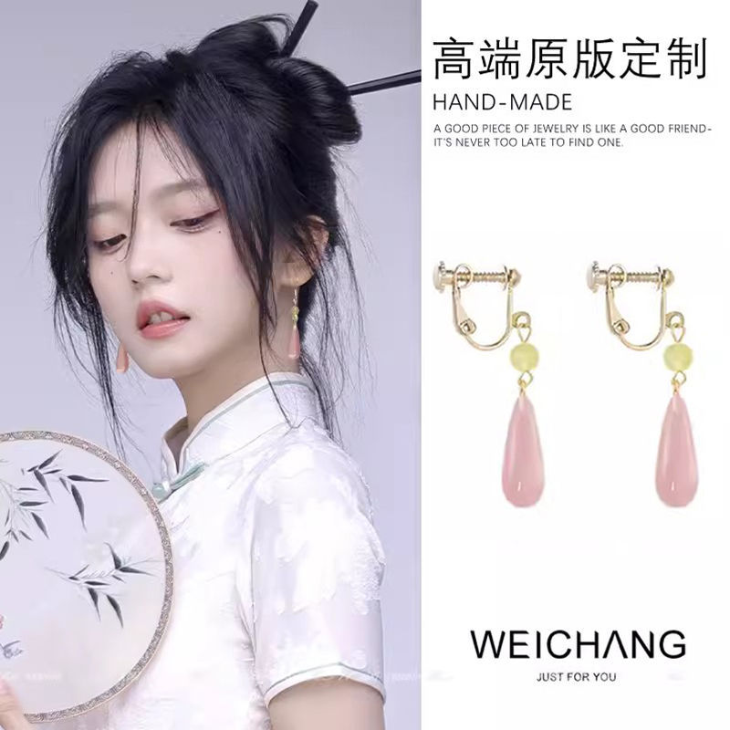 32 new chinese style red water drop ear clip