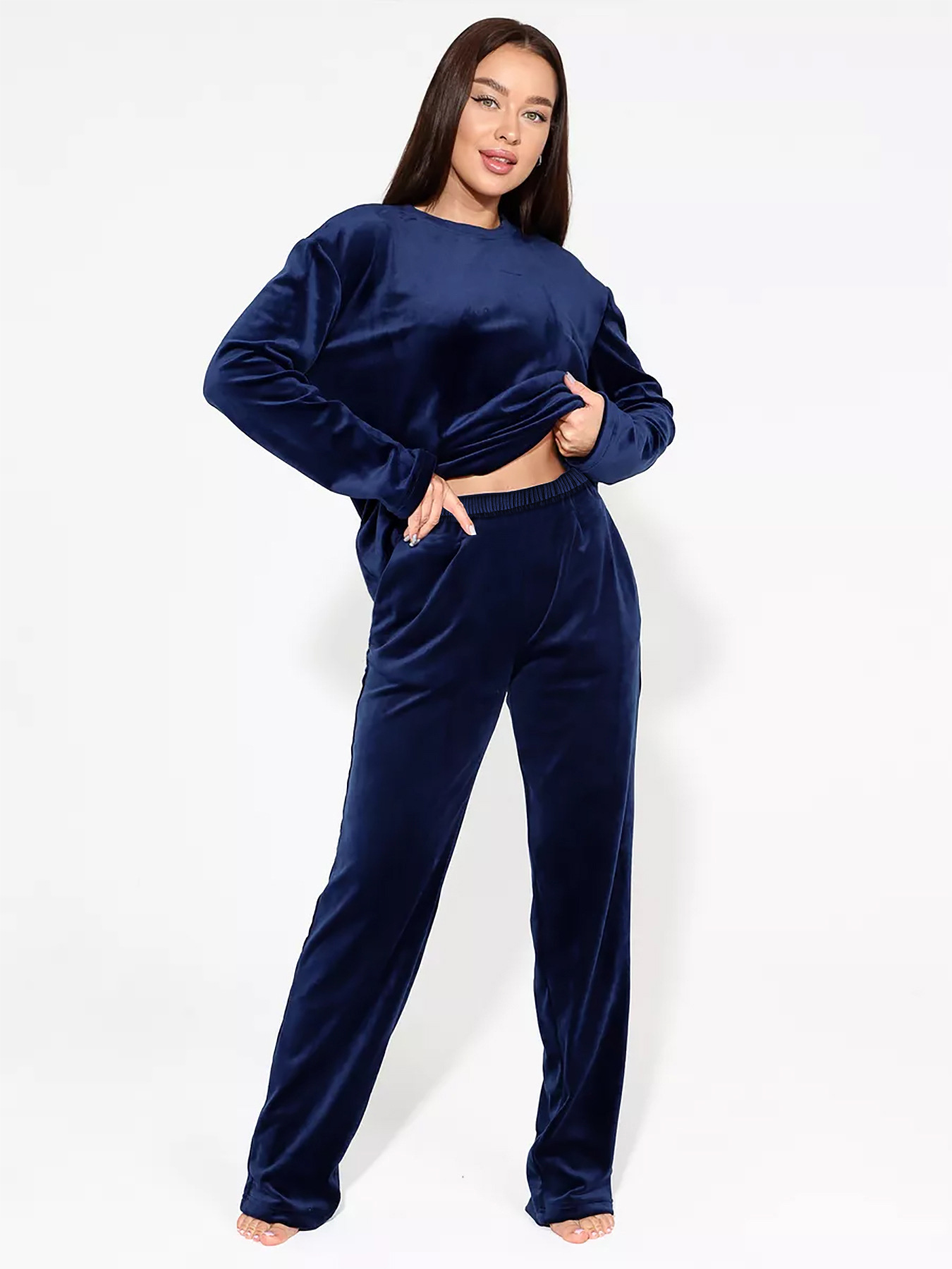 amazon europe and america cross border women's home clothes autumn and winter super soft silver fox velvet island velvet long-sleeved trousers home wear