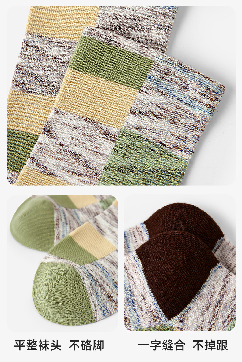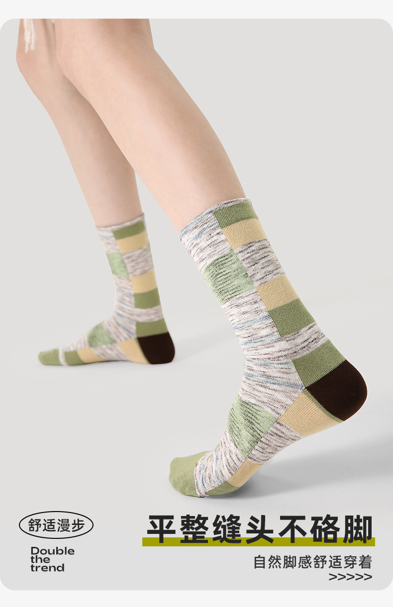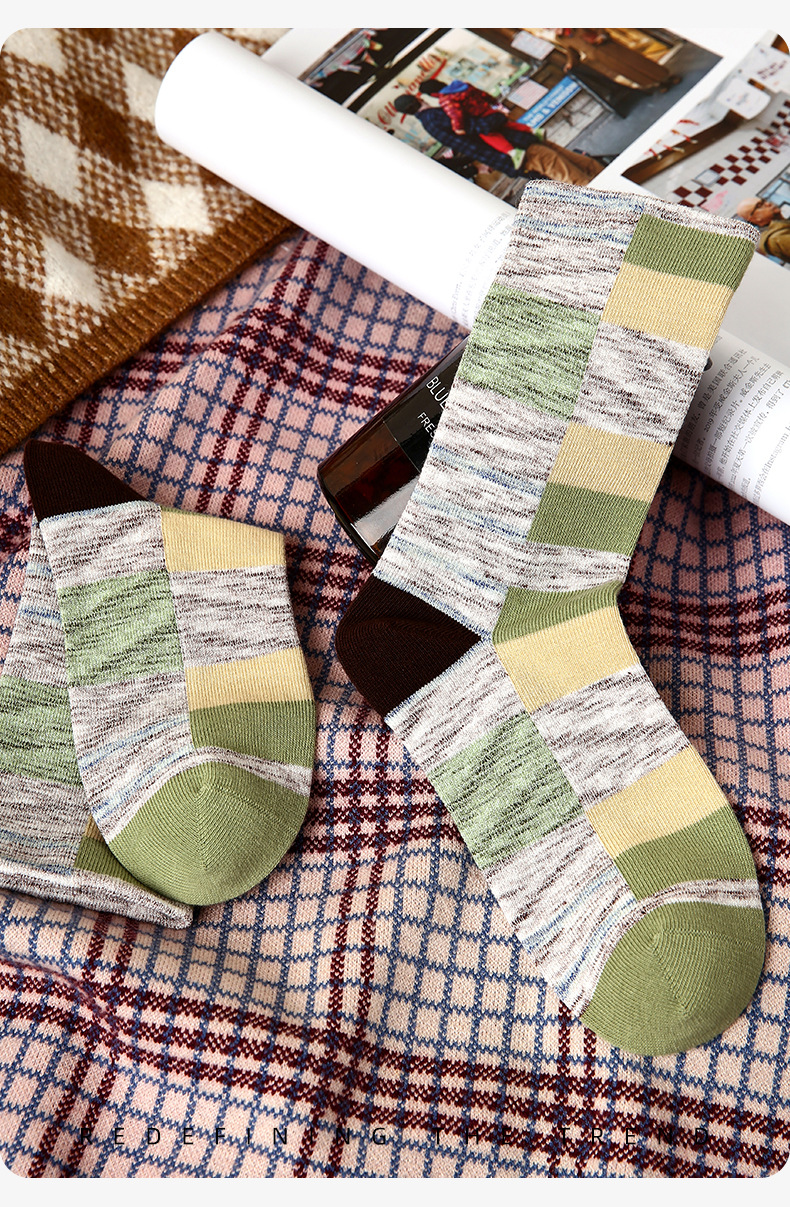xiyu planet color-contrast check socks women's spring and autumn athletic girl wind boneless combed cotton breathable mid-calf socks