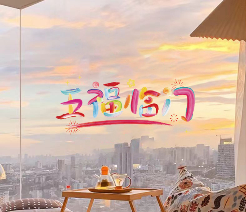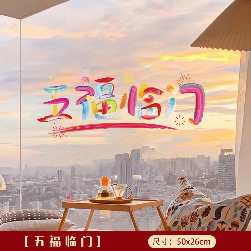 five blessings large 50 * 26cm color static sticker