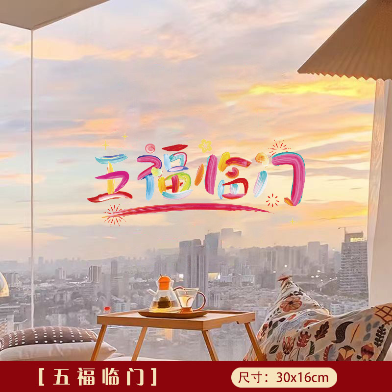 five blessings small size 30 * 16cm color static sticker
