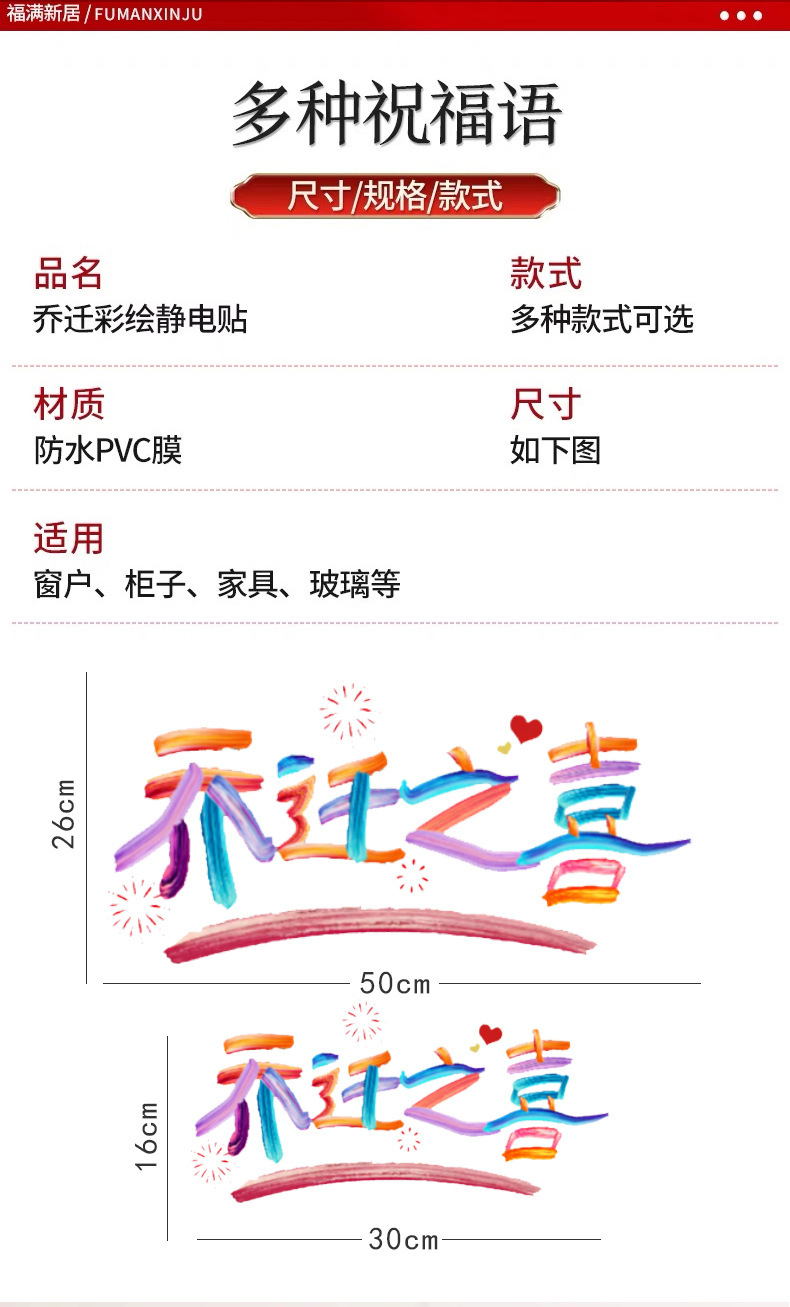 housewarming small size 30 * 16cm color static sticker