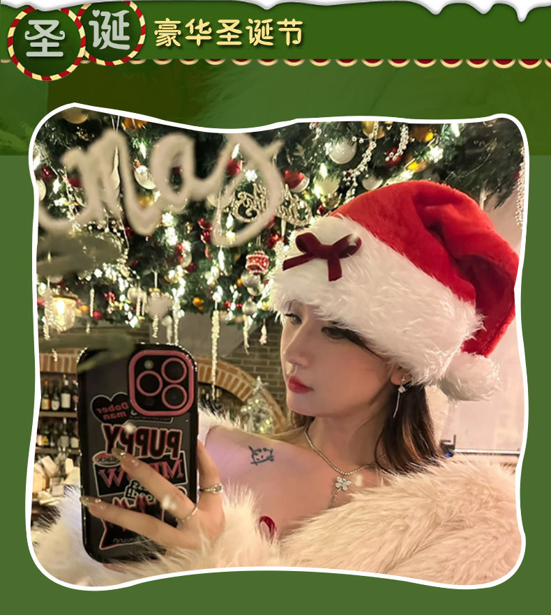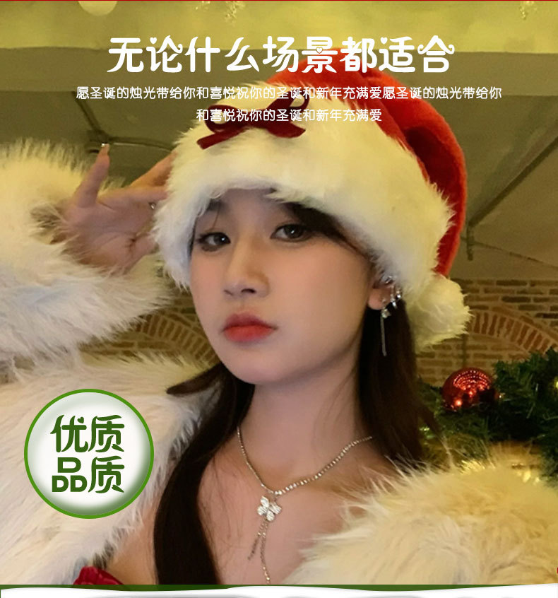 red bow plush flanging christmas hat