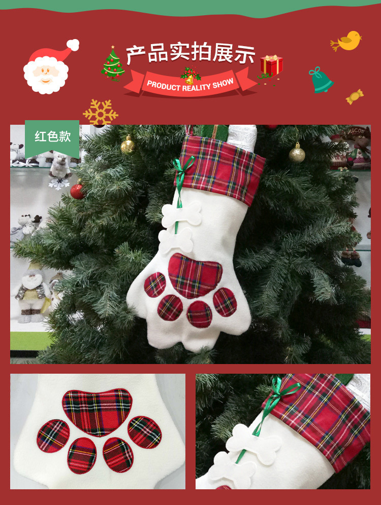 red paw print christmas stockings