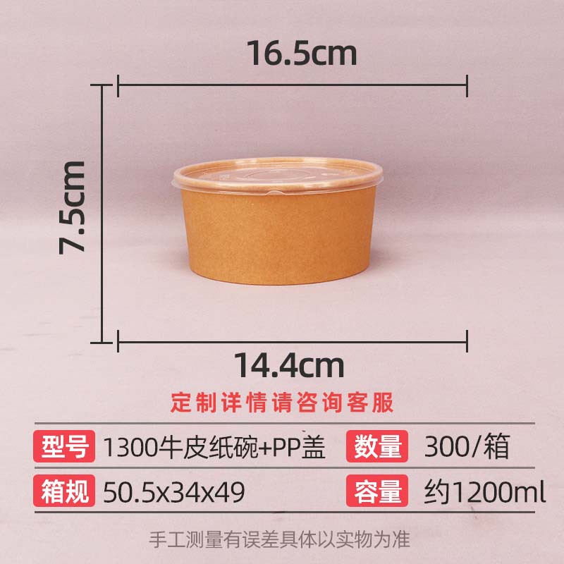 1300 kraft paper bowl + pp cover 300 sets