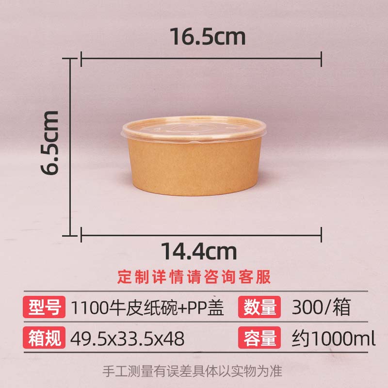 1100 kraft paper bowl + pp cover 300 sets
