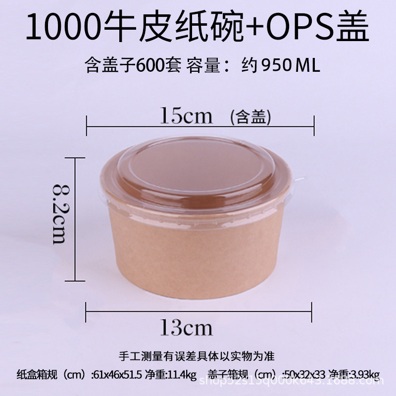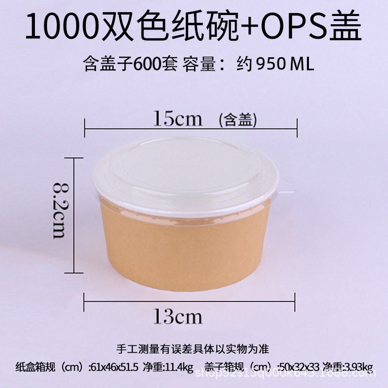1000 two-color kraft paper bowl + ops cover (300 sets/box) single