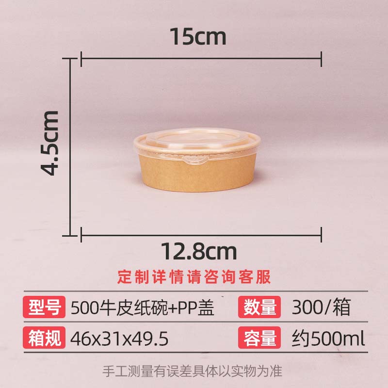 500 kraft paper bowl + pp cover 300 sets