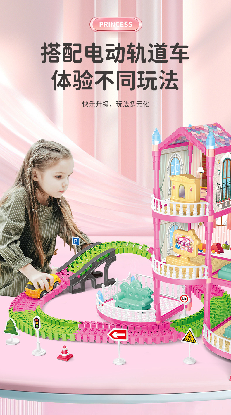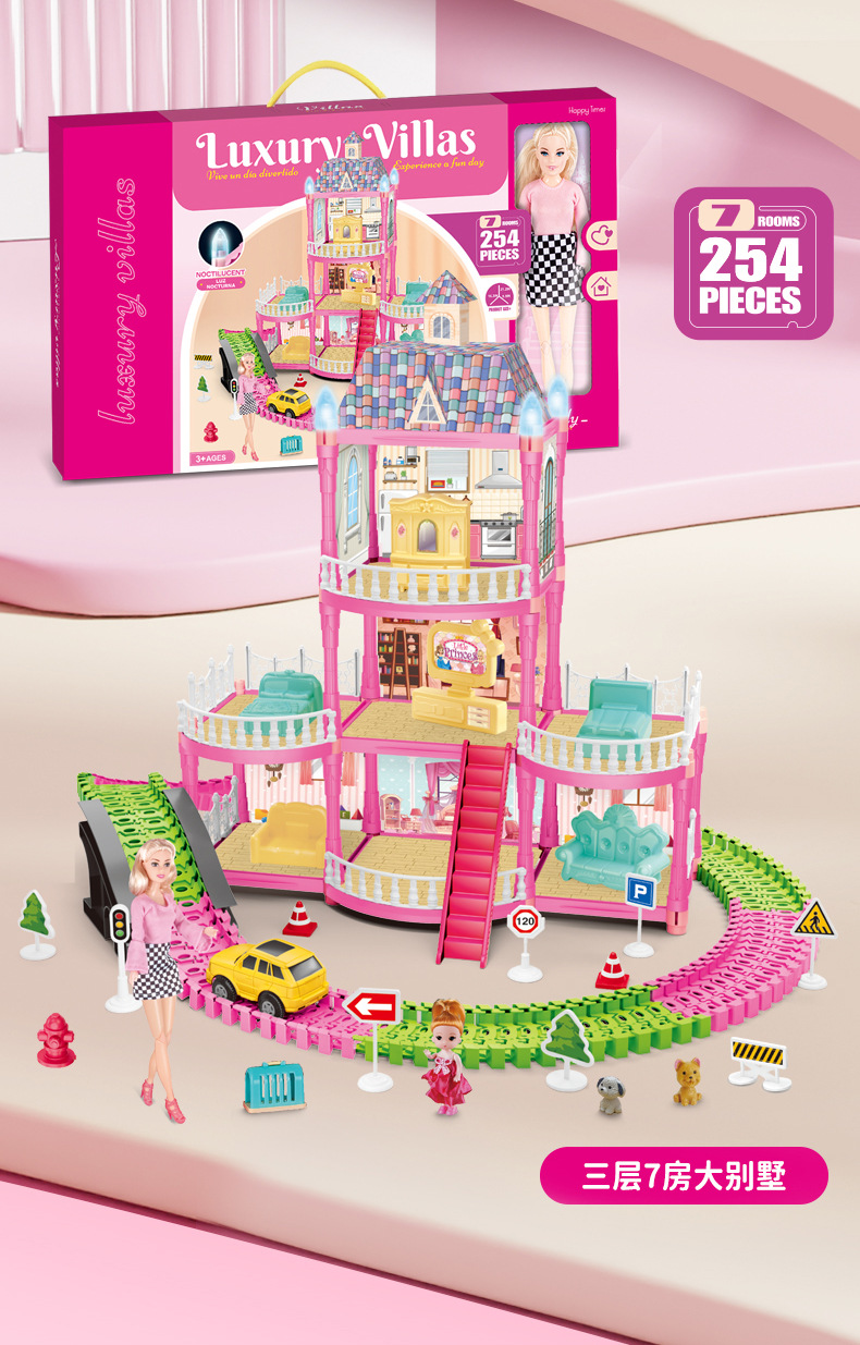 gift package with window-type holes a city track villa house with 11-inch doll 7 rooms (with 1 electric car)