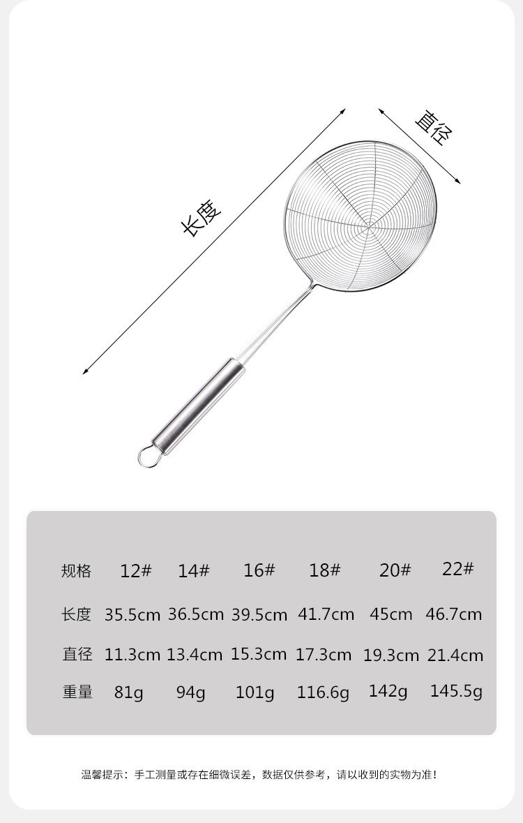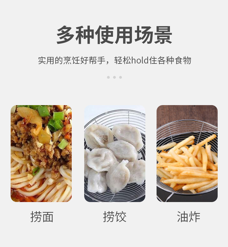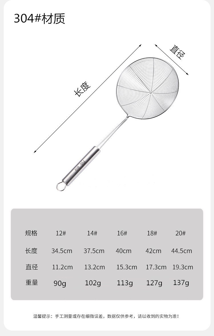 304 Stainless Steel Oval Handle Line Leakage Kitchen Cooking Grease Strainer Spoon Strainer Dumpling Noodles Strainer Spoon Wholesale