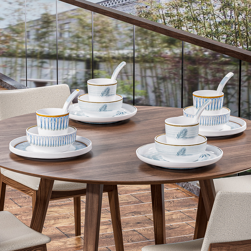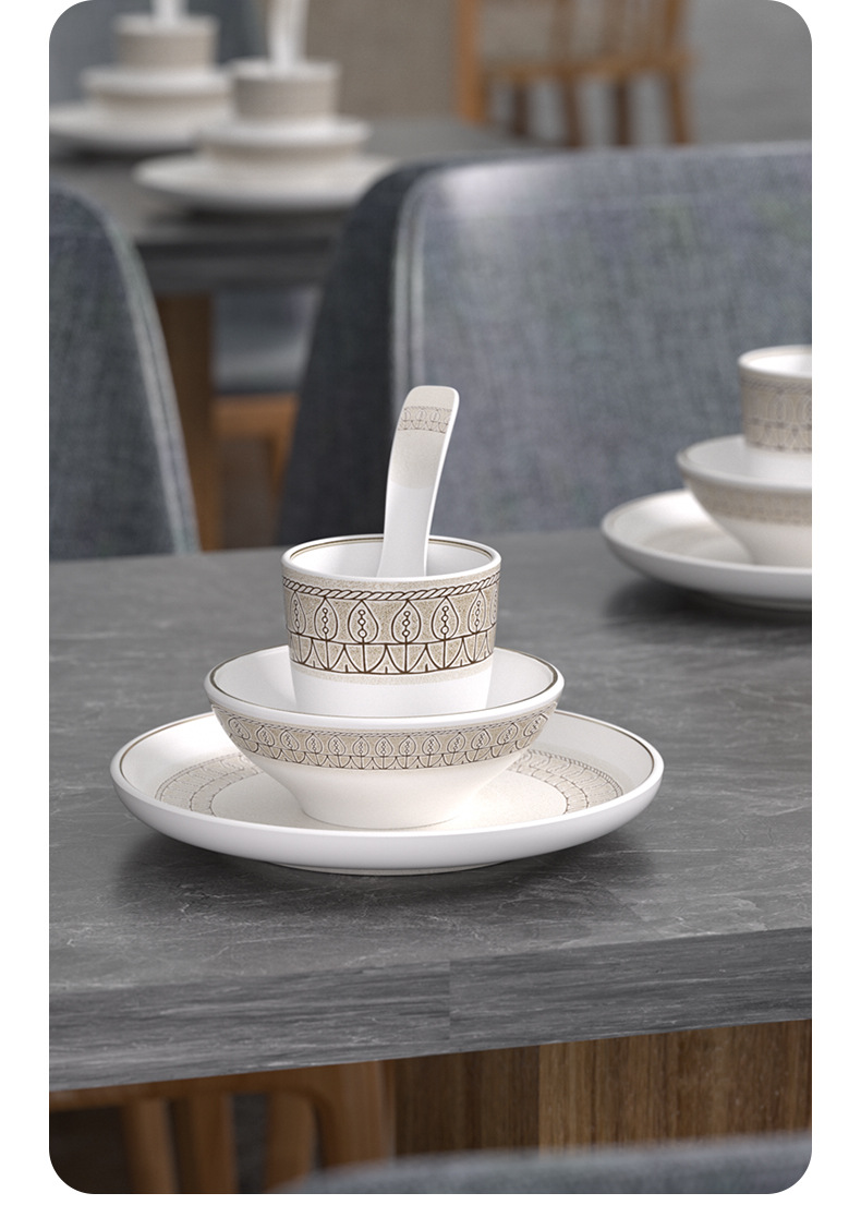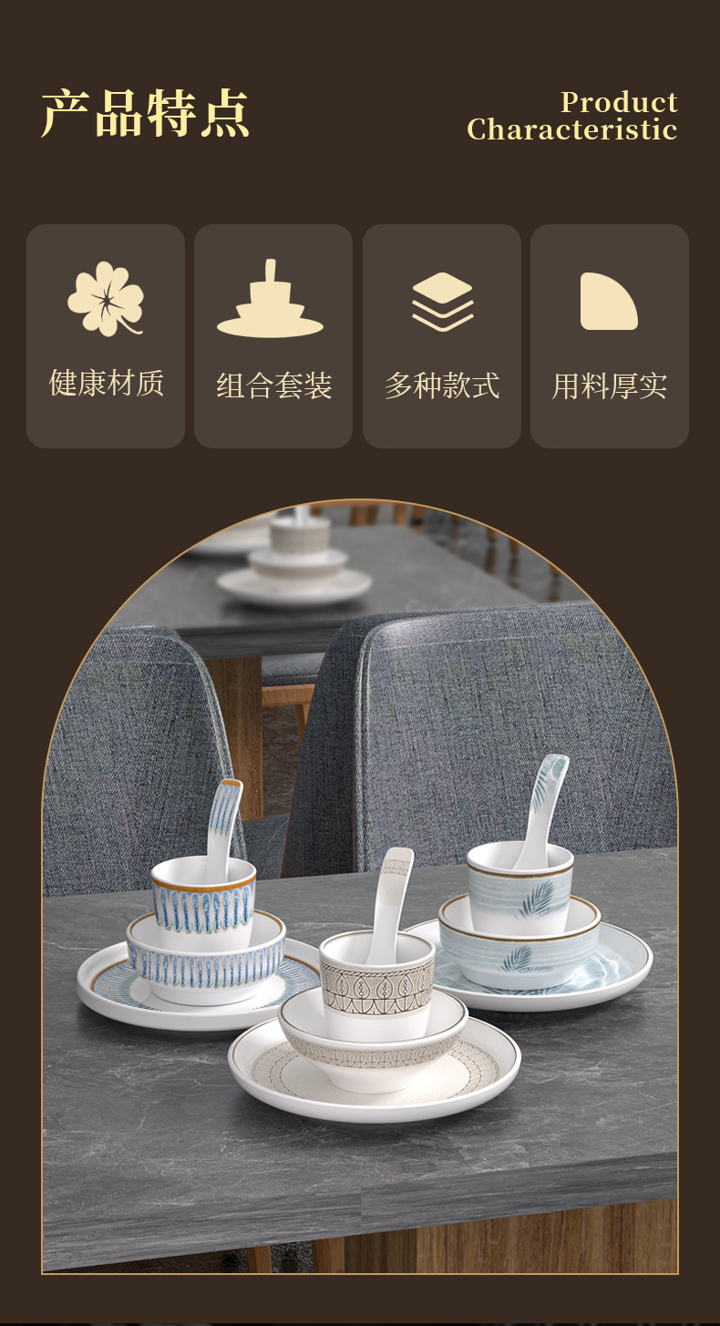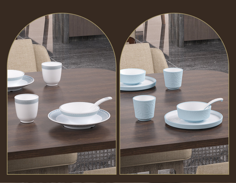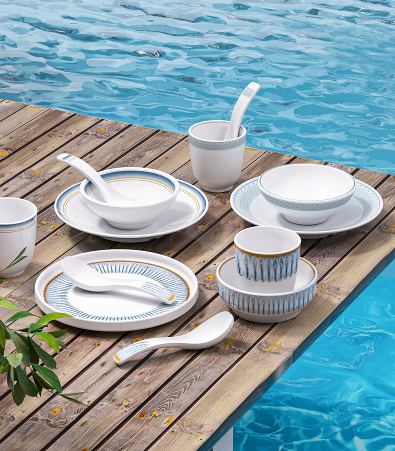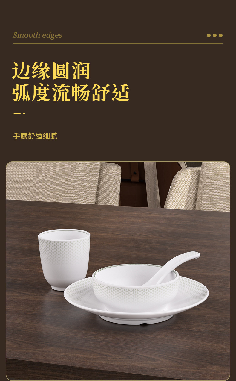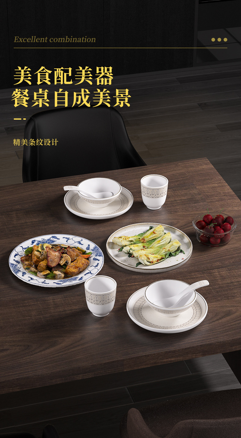 strictly selected melamine hot pot restaurant chinese restaurant commercial tableware suit hotel table setting four-piece set imitation porcelain bowl plate spoon cutlery