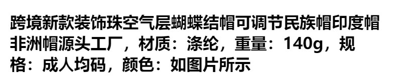 cross-border new arrival decorative beads air layer bow cap adjustable nationality-featured cap indian cap african cap source factory