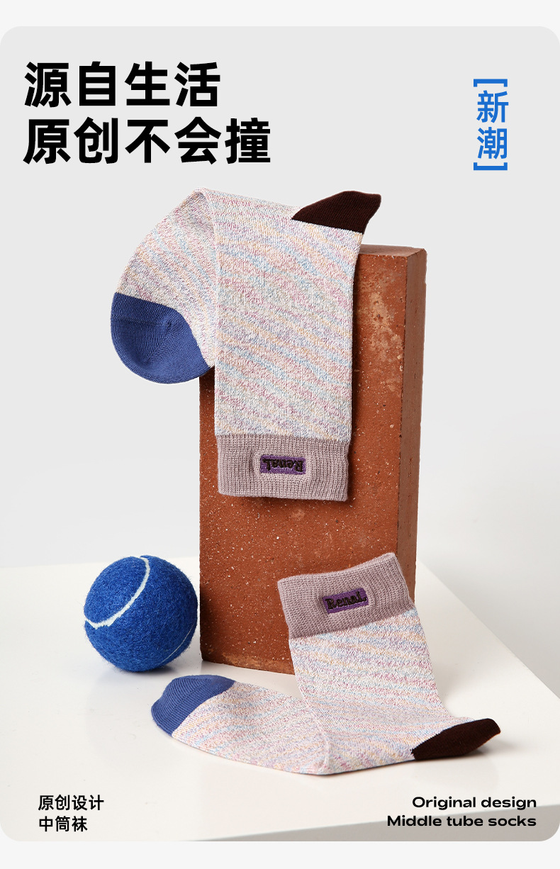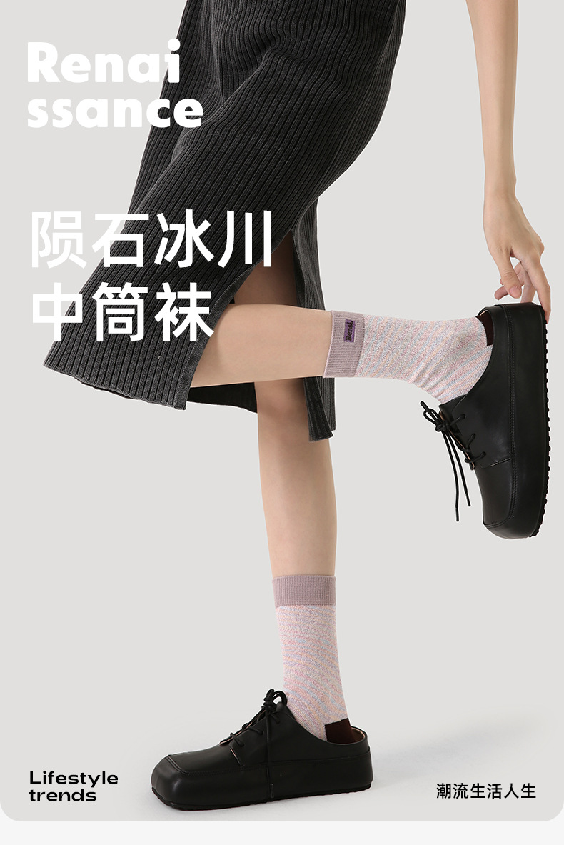 non-mainstream style fashionable color contrast patchwork loose japanese style college slimming meteorite glacier long tube female bunching socks
