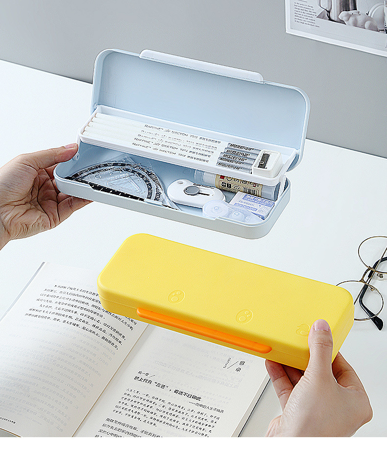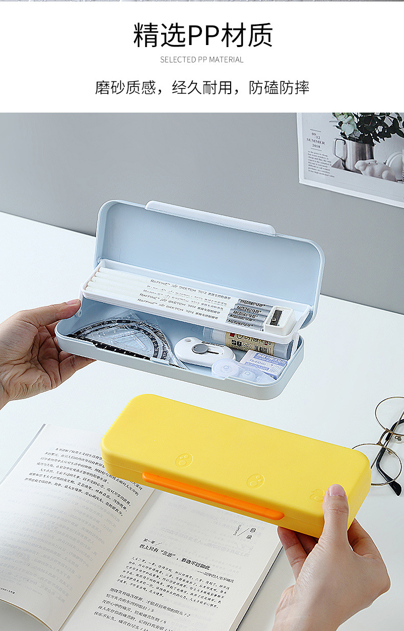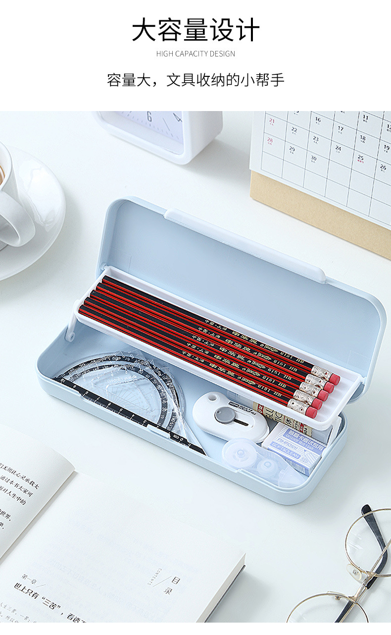 simple frosted large capacity pencil case macaron double-layer storage box creative primary school student plastic pencil box wholesale